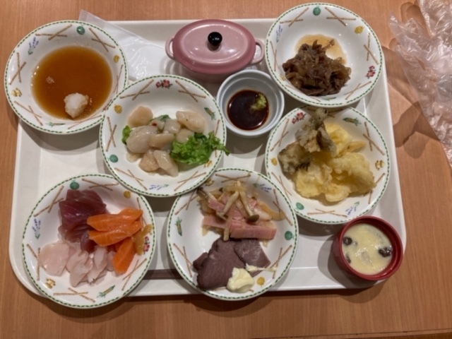 夕食のバイキングって、北海道の温泉ホテルはどこも似たり寄ったりですが、ここは違いました。とても多彩で和食のほかインターナショナルな料理も多く、私の知らない物がいっぱい。珍しさもあって色々食しましたが、どれも口に合いとても美味しかったです。
