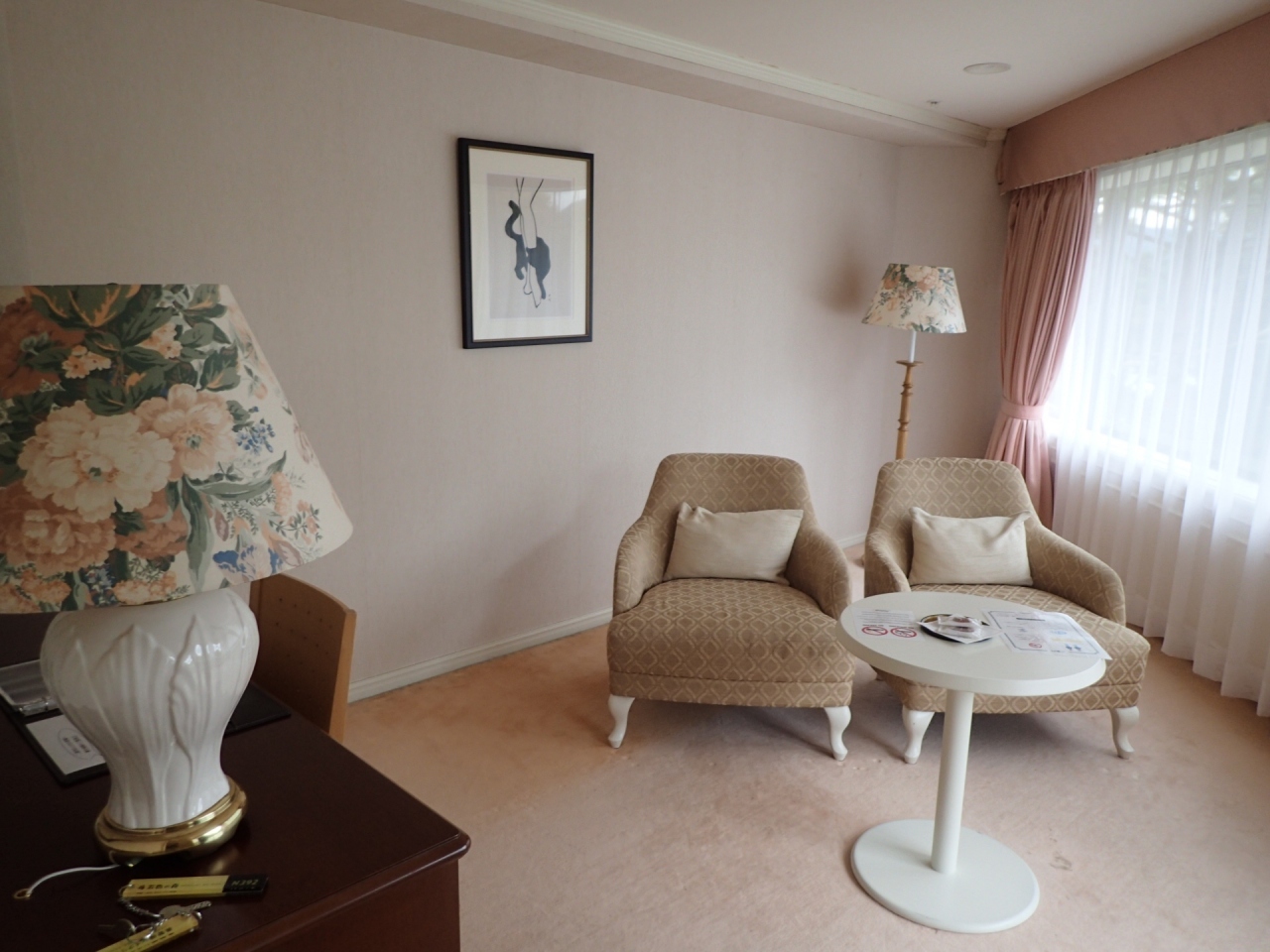 客室は6タイプ。ダブル(1Q,34㎡)、スタンダードツイン(2S,36㎡)、スーペリアツイン(2SD,41㎡)、デラックスツイン(2D,58㎡)、スイートの(2D,102㎡)と和室(12畳)。今回は公式サイトから予約したスーペリアツインの「チェックアウト早めでお得」プラン。早めと言っても9時までなので、無問題。