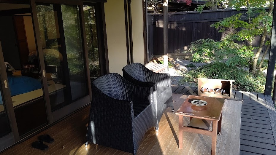 離れは和洋室に大きなテラス、露天風呂は温泉ではありません。
