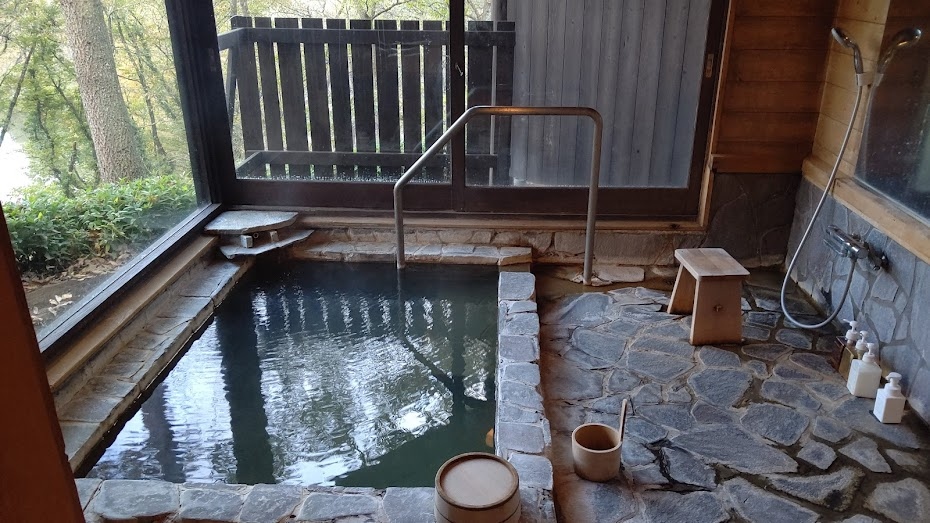 貸し切りの家族風呂はコンパクトながらもお湯がとても良いので