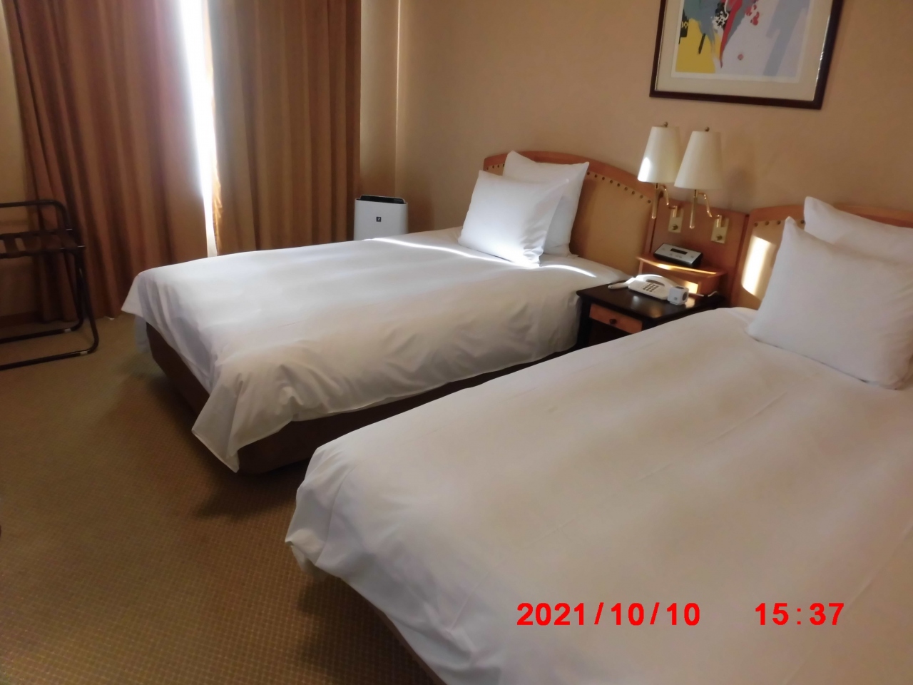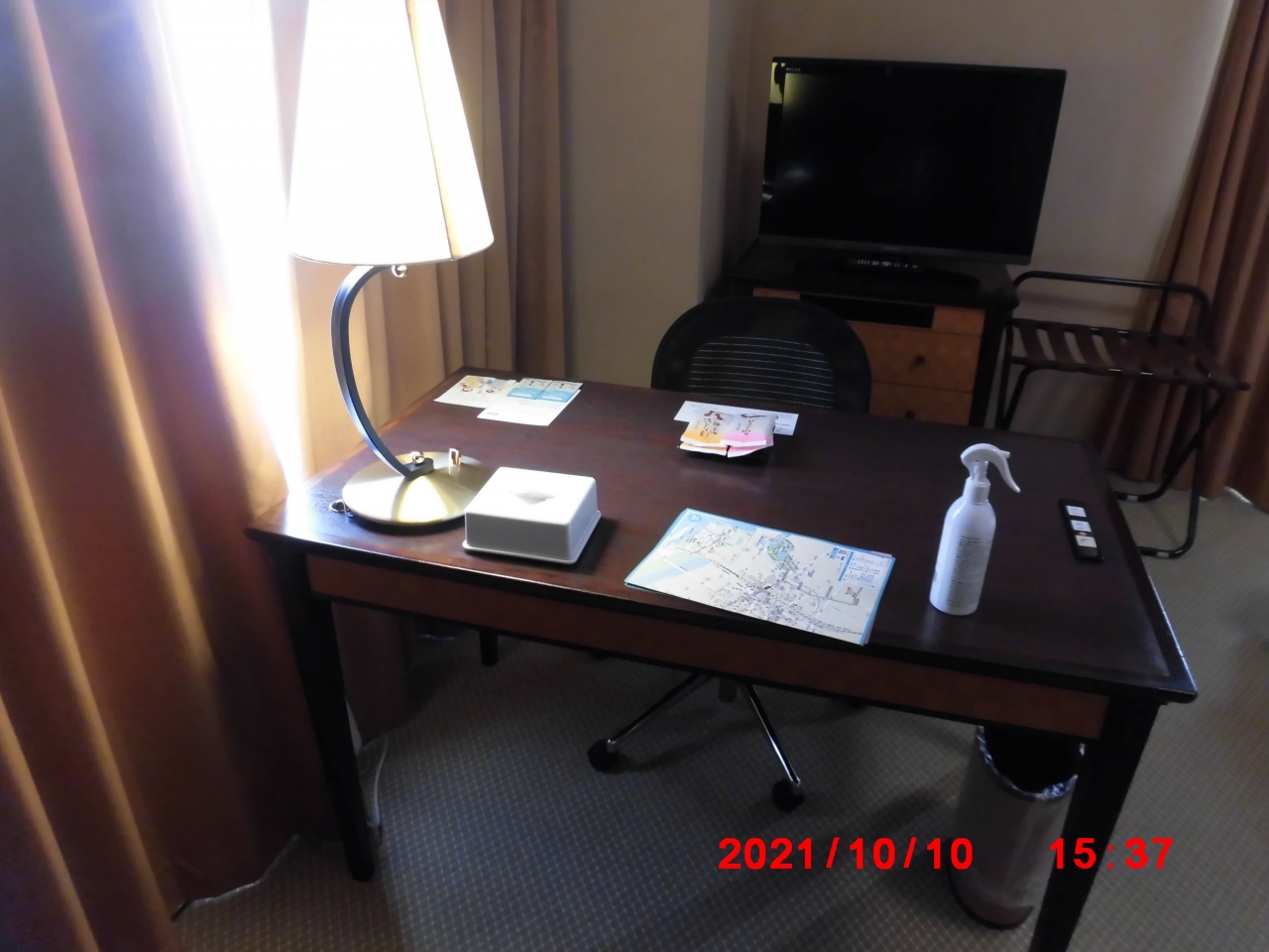 北陸の富山市観光で利用しました。ホテルの立地が非常に便利でした。目の前が富山城の城址公園ででしたが、残念ながら部屋からは見えなかったと思います。は部屋は32㎡のデラックスツインだったので私達には十分な広さでした。冷蔵庫は空で助かりました。何故かマッサージチェアが置いてあったので、滞在中2人で満喫しました。