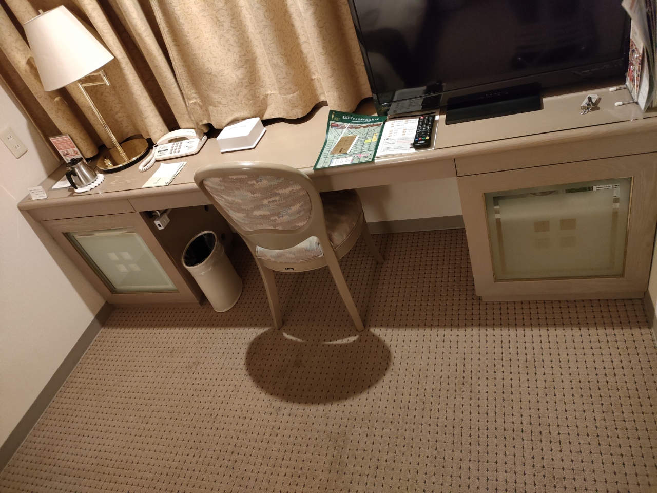 机は広めですが卓上灯をはじめとして備品がいろいろ置いてあり使いにくかった。