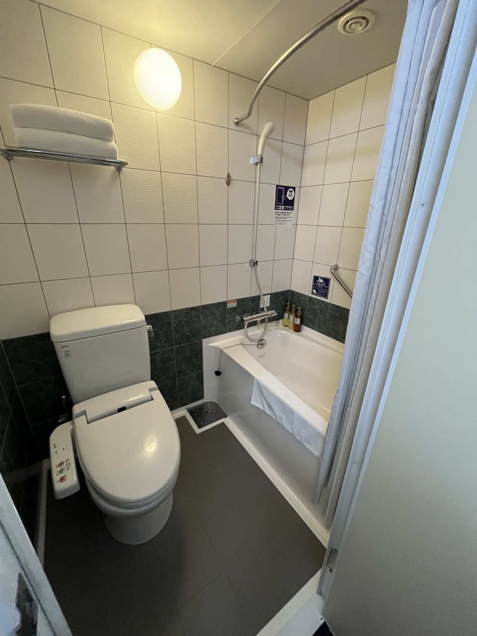 部屋は広くて、バスタブも大きめで良かったです。朝食は、宿泊者は無料で利用できます。無料とは言え、地元の郷土料理が並び充実した内容でした。