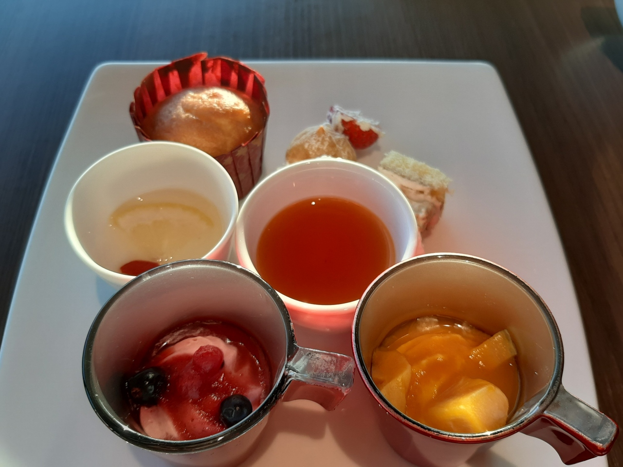 どれも美味しかったですがカップケーキとソーセージと豚肉のマスタードソース、ペンネもおかわりしました。朝からパフェや抹茶ラテもありました。
