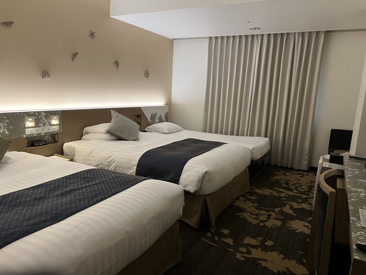 富山駅前に立地して市内電車の利用も便利です。3人で宿泊したので1つはエキストラベッドでした。