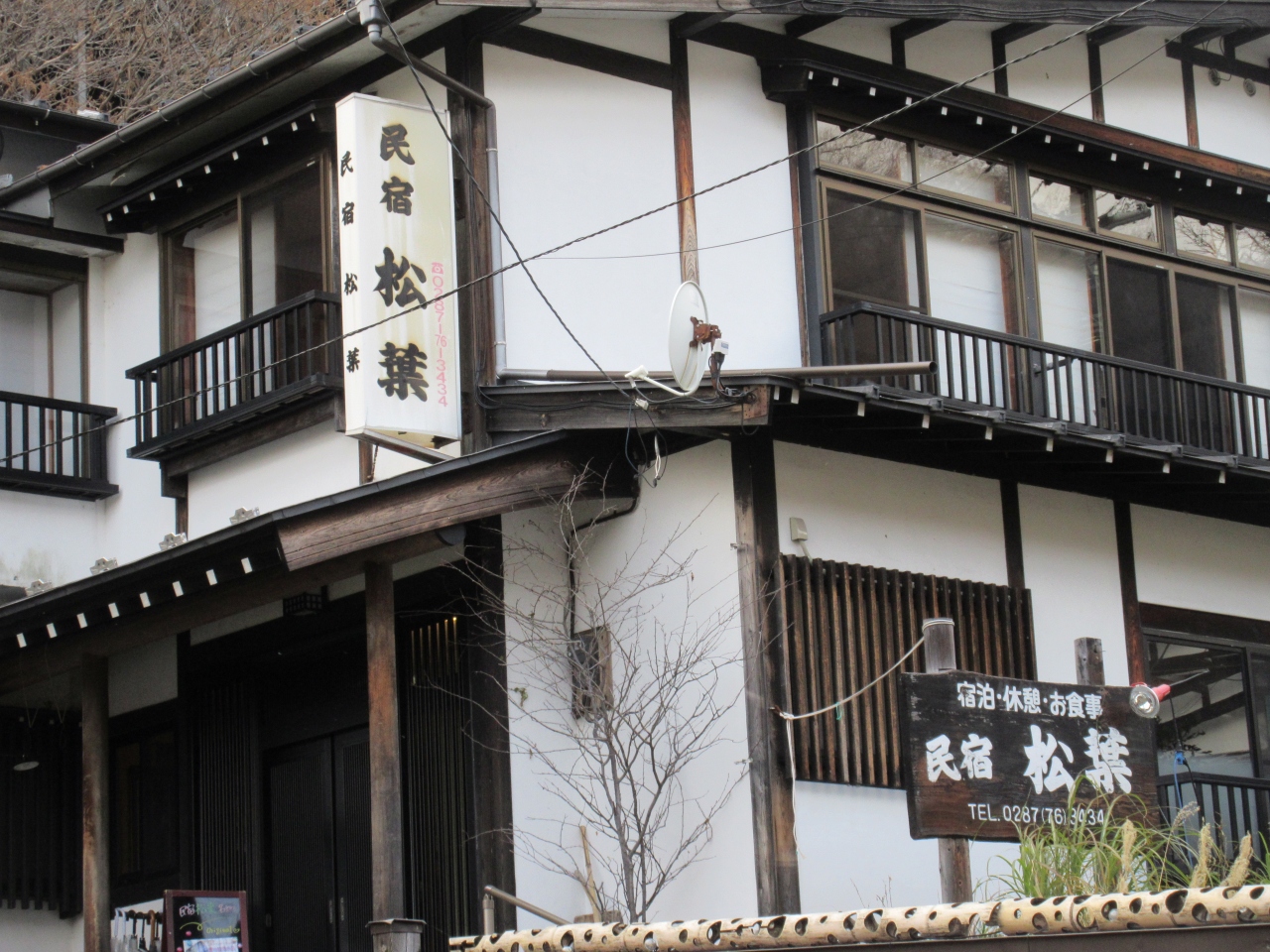 那須にある温泉民宿です。宿には内湯が無く、すぐ前の共同浴場滝の湯(有名な鹿の湯と同じ泉質)に入浴に行きます。(入り放題もちろん無料)