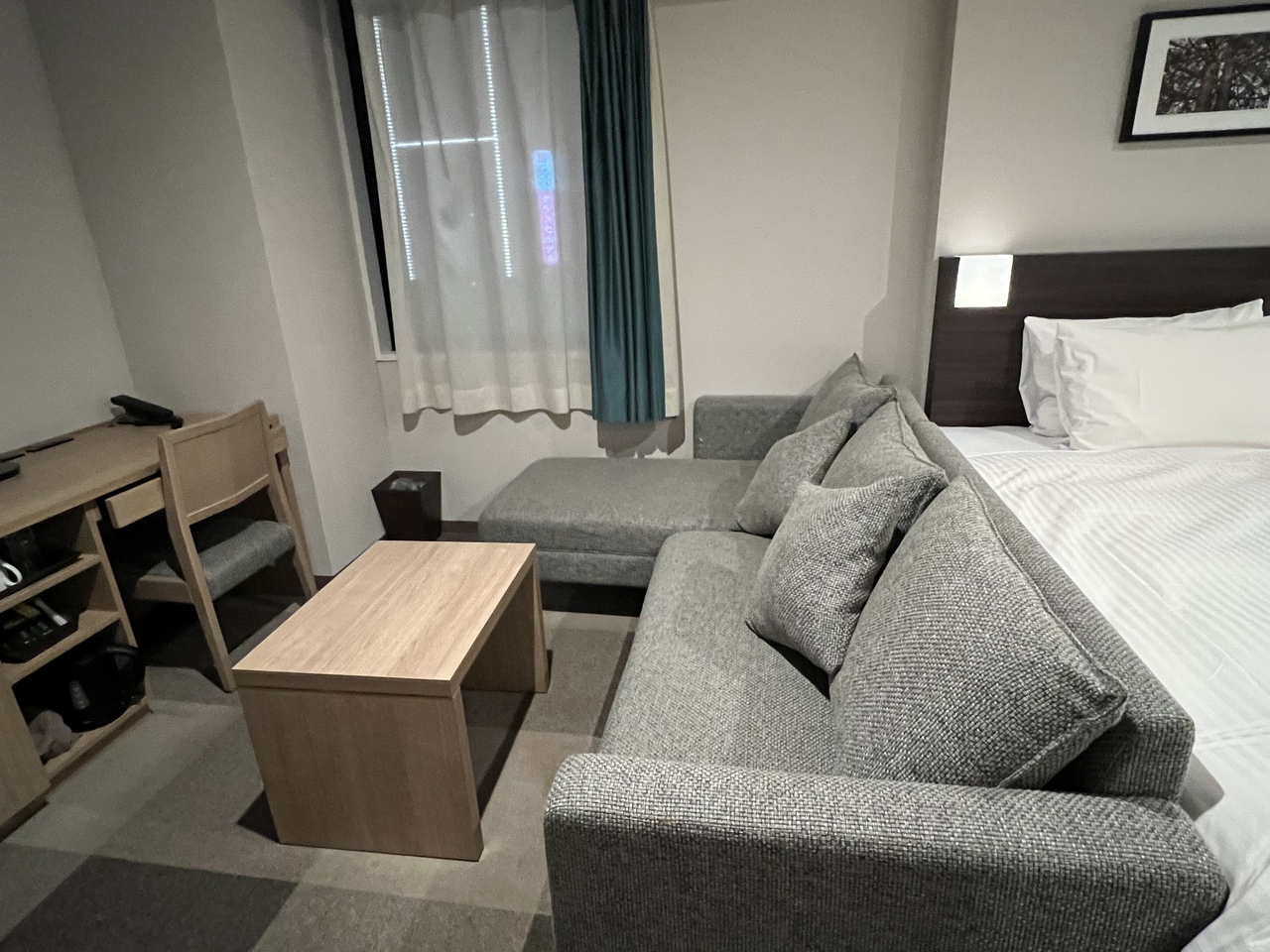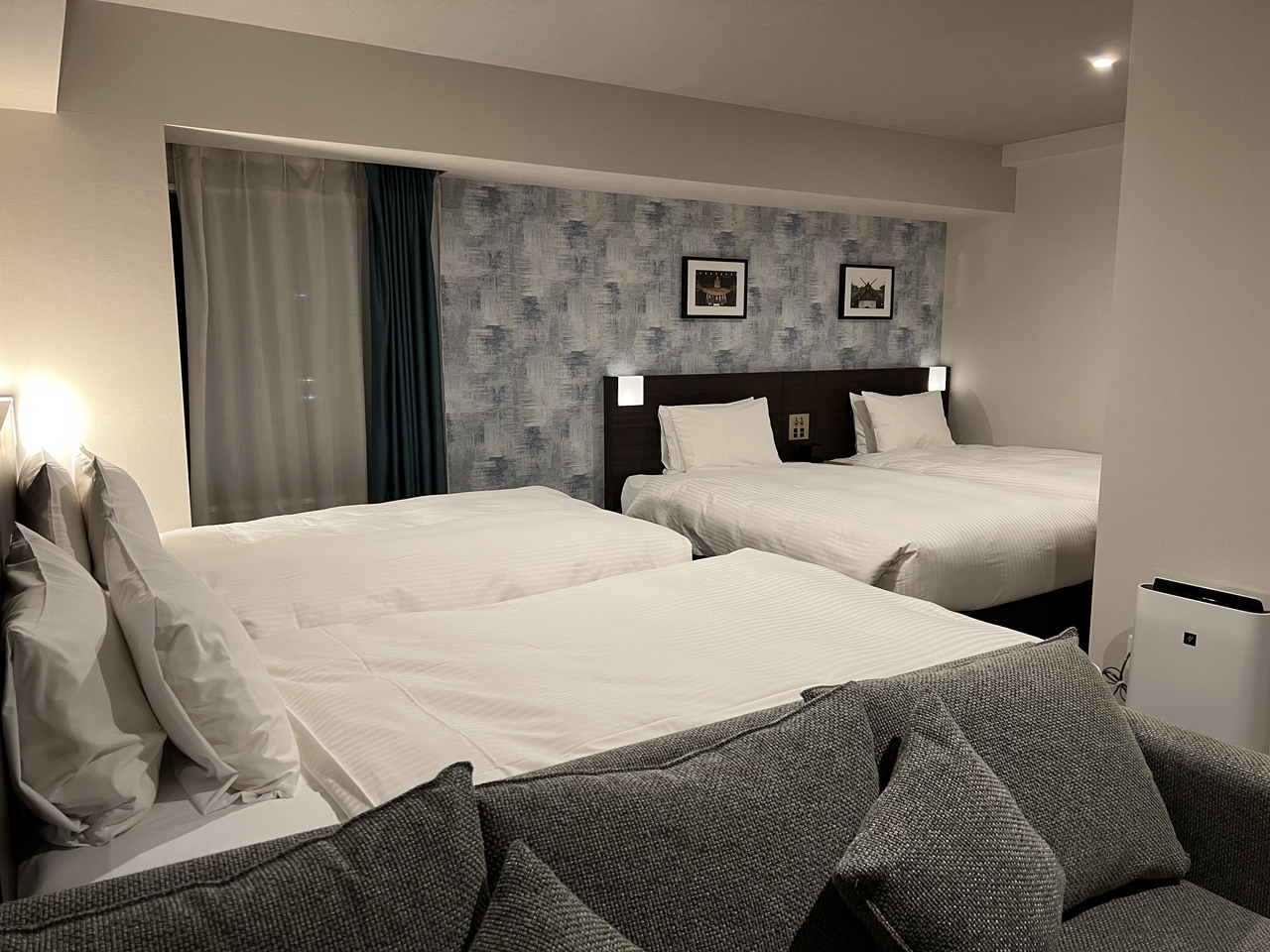 札幌大通駅1番出口から徒歩2分ほど。まだ新しいホテルです。フォースルームがあり利用しました。フォースルームは各階に一部屋ずつなのか、通りに面した角部屋がフォースルームでした。エキストラやソファーベットではなくベットが4台常設です。