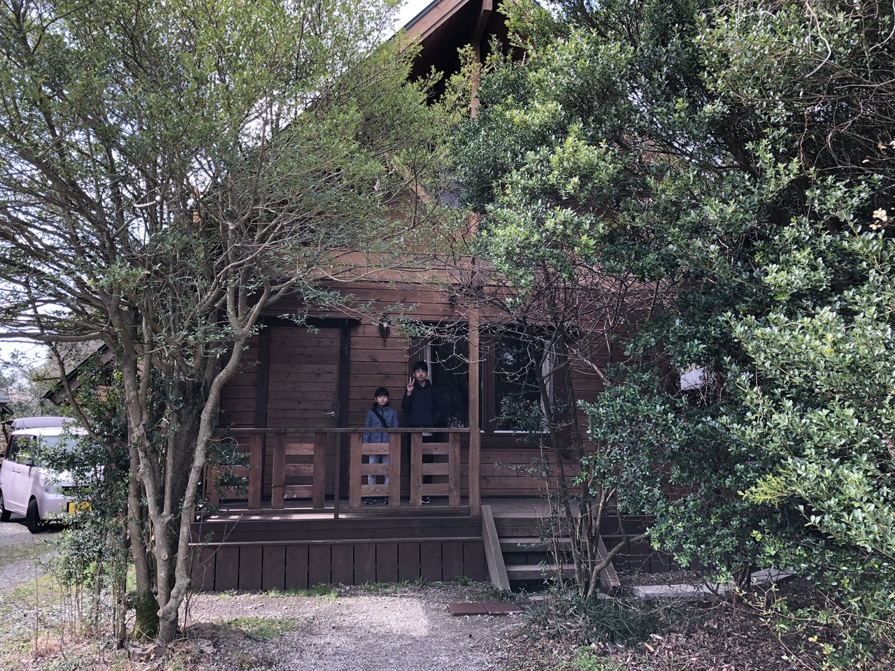 二階建てのログコテージは、家族四人では広すぎるくらいでした。