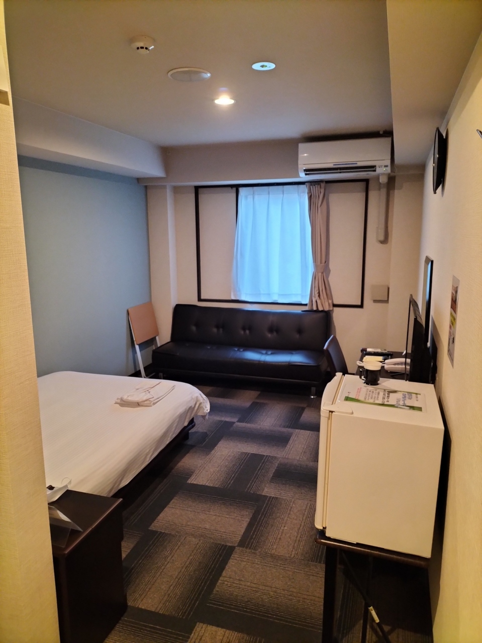 車利用で価格重視のビジネス利用ならベストのホテルですね。コンフォートホテルの向かいにあります。部屋もシングルルームは広いです。