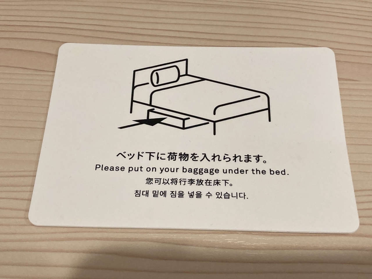 ベッドの下にスーツケースなどが置けるようになっているなど、機能的な作りも良い。