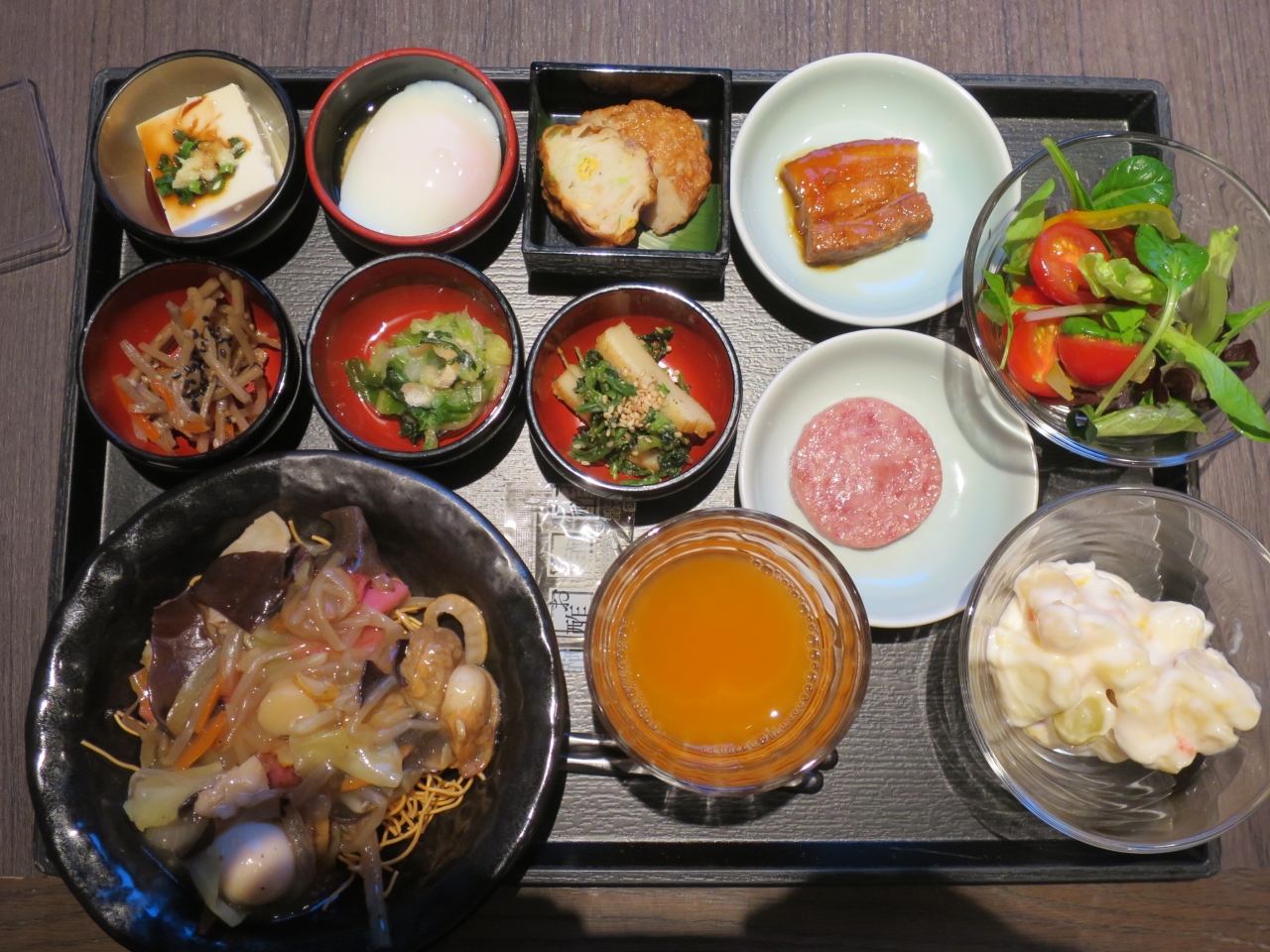 一覧を見る朝食ビュッフェには、皿うどんもカステラもあります