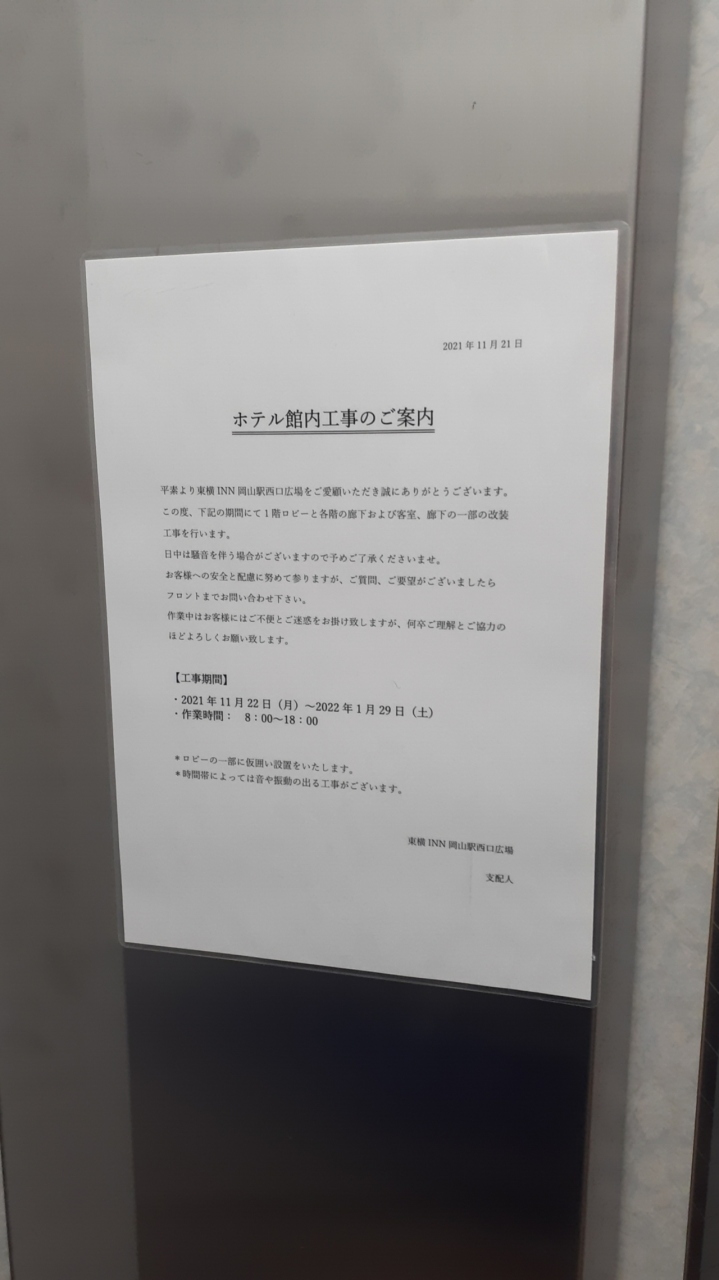 なお、2022年1月末頃まで9時~18時の時間帯で工事が行われるれしく、工事を行う時間帯では騒音や振動が発生する場合がある旨掲示がありましたので、注意が必要です。