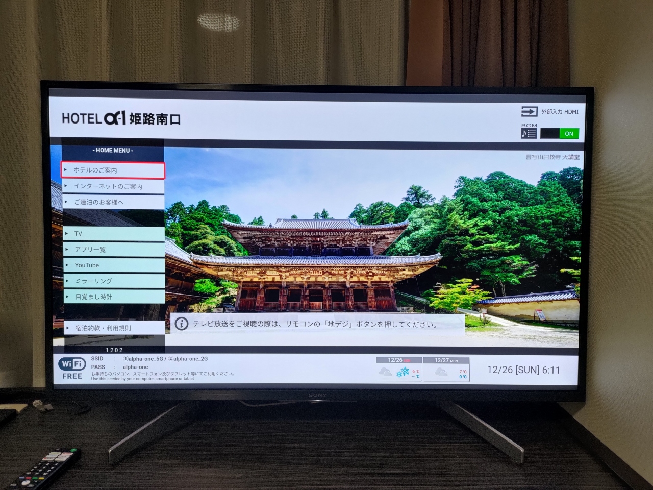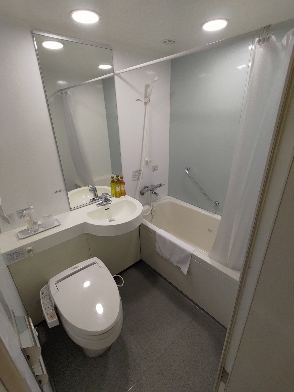 部屋もシングルルームにしてはかなり広々しており、バスルームも余裕の大きさ。2階には大浴場もありました。新築という訳ではなさそうですが、メンテナンスが良いのか、まだまだ新しい感じを受けました。テレビもサイズが大きく、YouTubeやミラーリングに対応。もちろんWi-Fiも完備です。おかげさまで快適に過ごすことができました。
