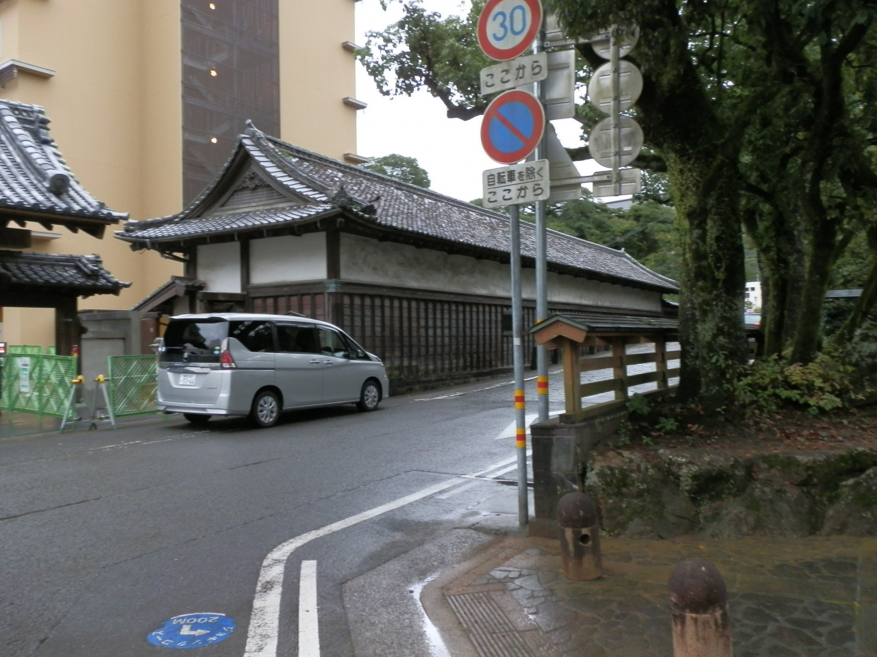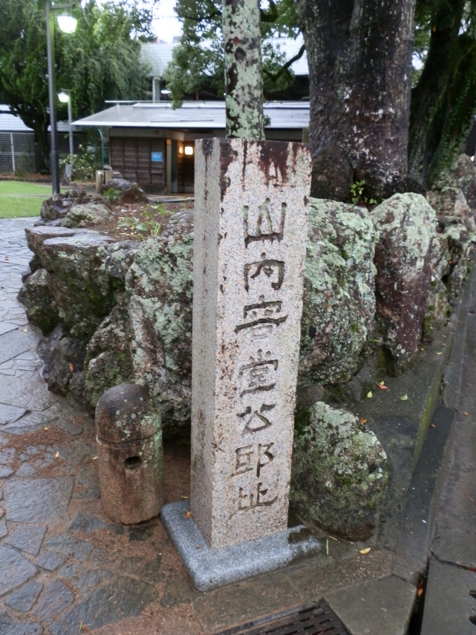 観光バスを降車すると道端に「山内容堂公邸址」の石碑が立っていた。その向えには重々しい「旧山内家下屋敷長屋展示館」、歴史を感じる建物がある。重厚な歴史を感じる門をくぐり、三翠園に入った。