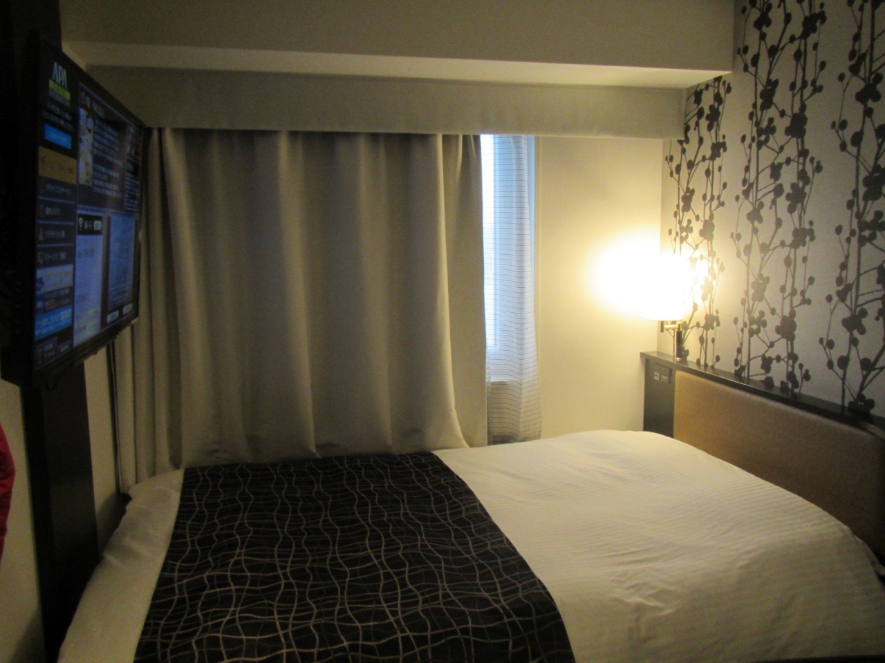 アパホテルは、内装がちょっと社長の趣味が入っているようですが、現在のところ、素泊まり利用の場合、周辺にあるビジネスホテルの中では格安だと思います。また、泊ってみると分かるのですが、部屋や設備が機能的で、「無駄がない、全てがある」を謳っているだけに、細かいところに配慮が効いていると思いました。例えば、直後に泊った或る場所の東●インではベッドの上に物を置けるスペースはなく、ベッド横に一つだけあるテーブルスタンドを利用するため、ダブルベッドでその前に人が寝ている場合は少し不便です。USB電源コンセントもベッド横には付いておらず、ベッドで横になりながら充電しつつのスマホ・タブレット利用といったこともできませんでした。また、カードキーなので人数分鍵をくれるのはとても良いですね。もっとも、便利かどうかの感覚は人それぞれだし、馬喰町駅前のアパホテルは、大浴場やコインランドリーは無いなど一長一短もあります。なお、コインランドリーは東日本橋駅方面のものを案内されます(GoogleMapでもコインランドリーで検索可)。