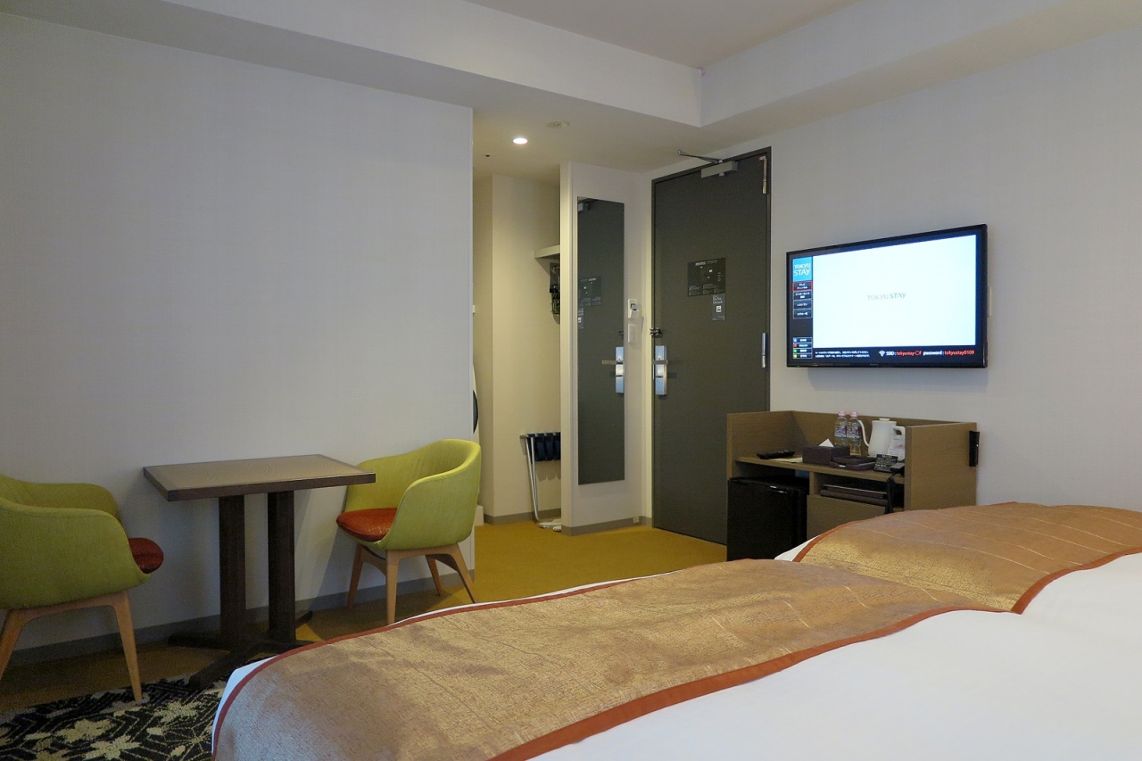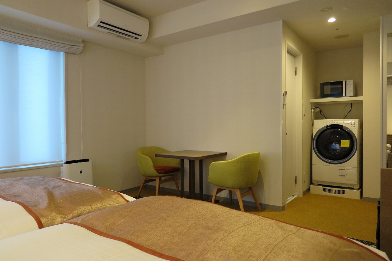 東急ステイブランドを初めて利用してみました。年末での宿泊になりましたが、予約サイトからクーポンやらポイントやらを利用し、本館ツインルーム(朝食付)を4450円で予約しましたが、“別館・はなれ”のコンフォートツインにアサインしていただけました。中長期滞在型宿泊施設ですので質素そのものと思っていたのですが、華美な飾りはありませんが、別館のロビーなどは京都らしい置物もあって、なかなか高級感がありました。客室も質素ながらデッドスペースのない合理的なつくりで表示面積以上の広さを感じることができました。全自動ドラム式洗濯機が利用できるのも、旅行期間の中程であったこともあり大いに威力を発揮してくれましたし、中長期滞在には電子レンジも活躍しそうです。ただ朝食は1530円というプロパー料金が少し高いと感じました。