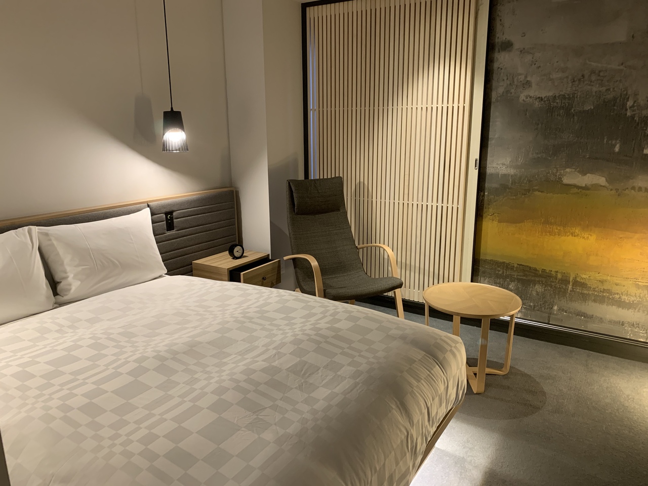 部屋は靴を脱いでくつろげた。和モダンでシンプル。
