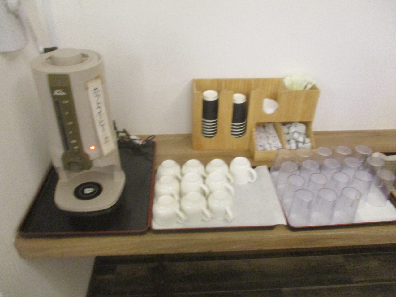 1階のフロントエリアにウェルカムコーヒーと冷たいさんぴん茶を提供していました。コーヒーメーカーが置いてあり、夜は22時頃まで対応していました。セルフですが宿泊者であれば誰でも利用でき無料でした。サービスのとてもいいホテルに感じました。