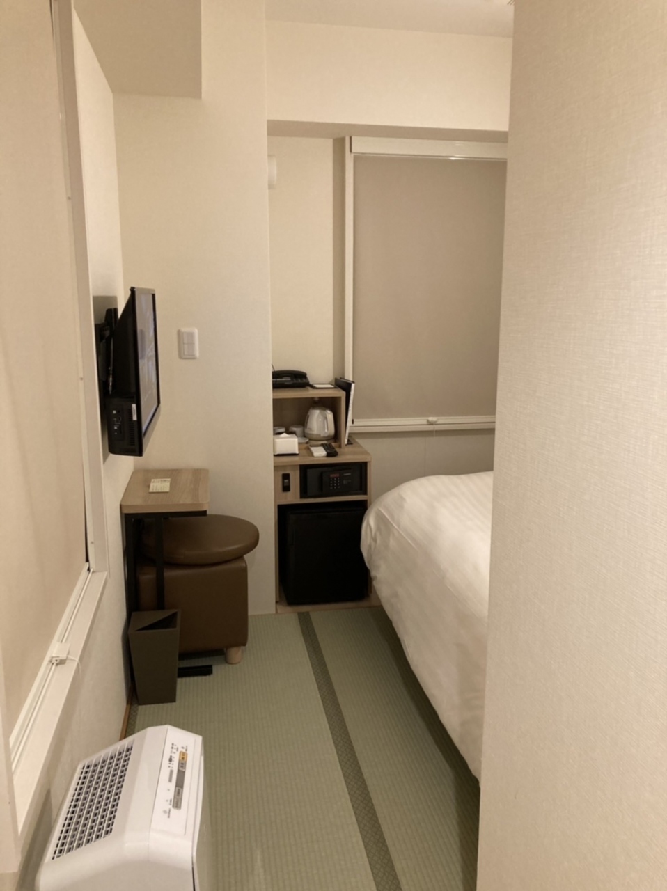 部屋に入ると、畳にベッド!?ビジネスホテルでは、初めての感覚でしたが、これはこれでありかも。