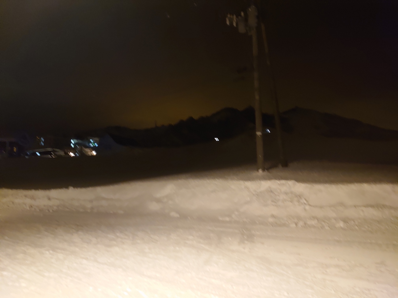 明け方は、圧雪車のライトが結構強いのか、カーテン越しが明るくなってました。