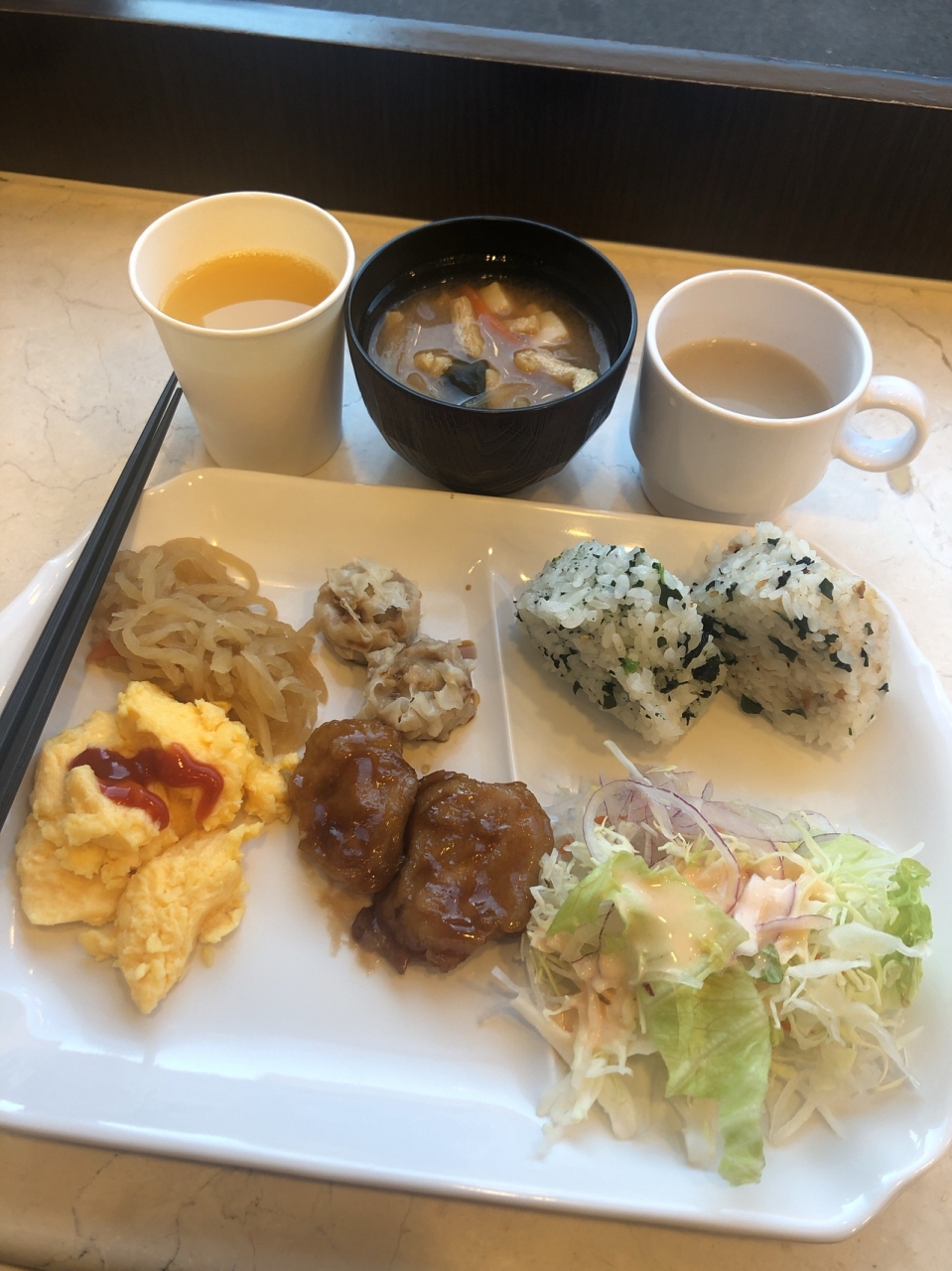 朝食バイキングは無料で、部屋でも食べれるようにお弁当箱も置いてありました。
