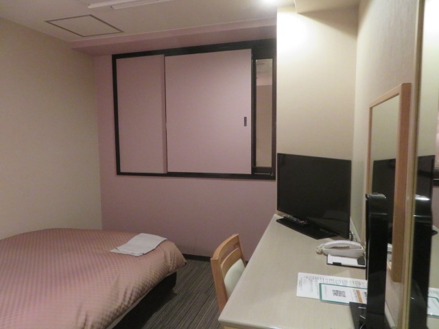 金沢駅からすぐで立地条件ばっちりです。客室はシンプルですが、機能的で、テーブルが大きいのがいいですね。テレビを見ながら本を見れたりしていいですよ。あと意外だったのですが、中浴場くらいのがあって、これはありがたかったですね。