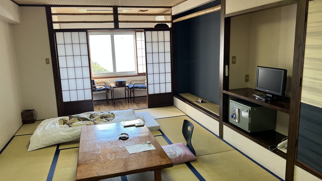 部屋は昭和な雰囲気。露天風呂付きの客室もあるようです。