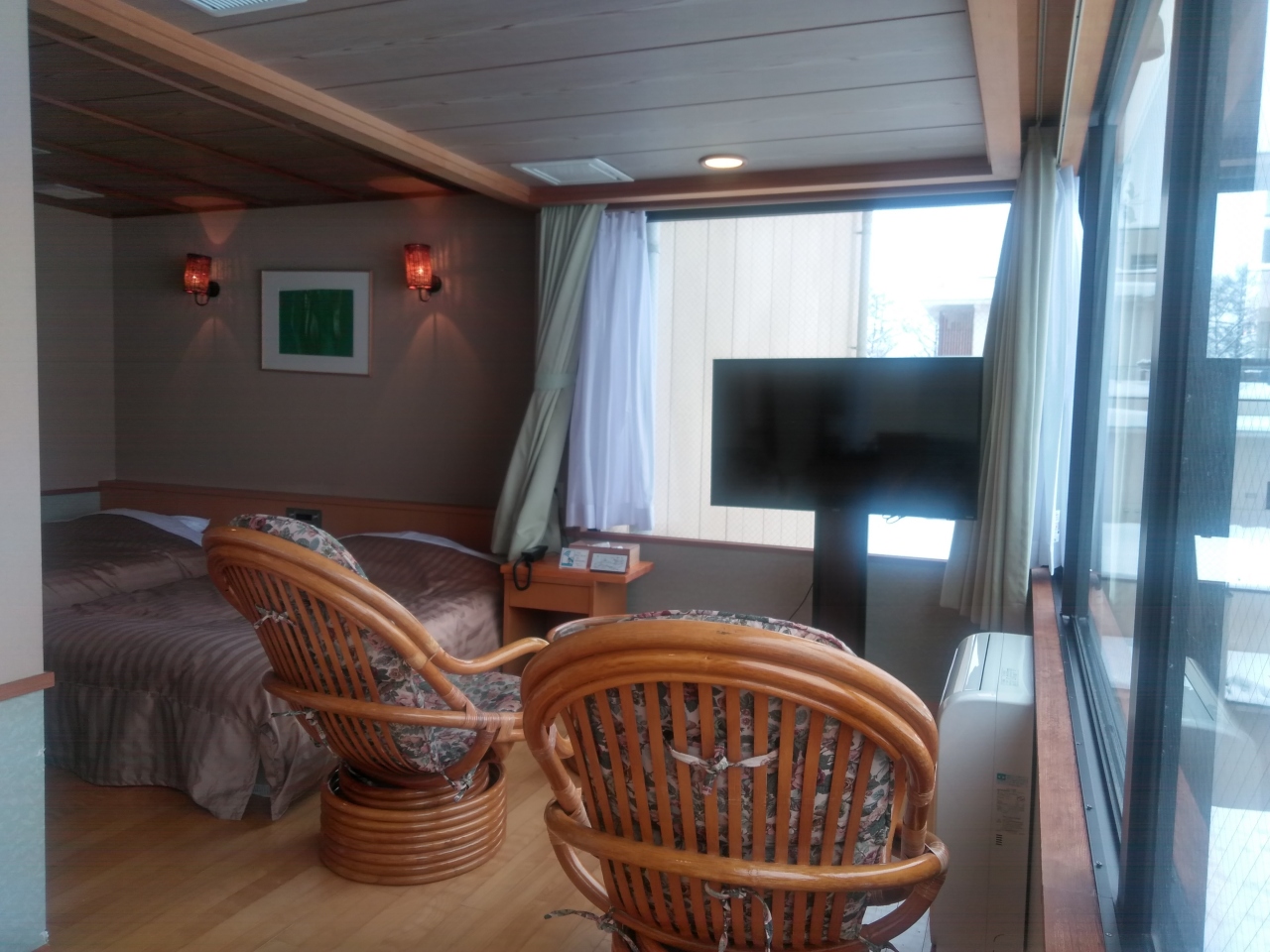ビジネスホテルより安い料金だったのに、「お部屋お任せ」で「湯楽の館・翠のスーペリアツイン」にして頂けました。3面が窓になっていますが、2面半が建物で、林の奥に山が見えるだけでした。アメニティなどは「薫風の館・茜」よりグレードアップされています。大浴場は、サウナはお休みですが、ジャグジー・露天風呂もあって良いです。以前と違って、フロントの方の対応も良くて、アンケート用紙もあったり、サービスが良くなっていました。また行きたいです。