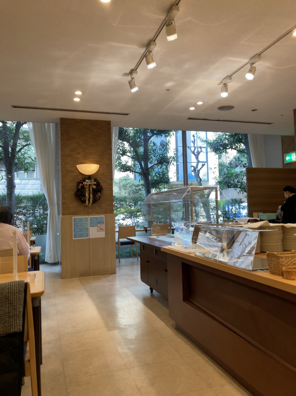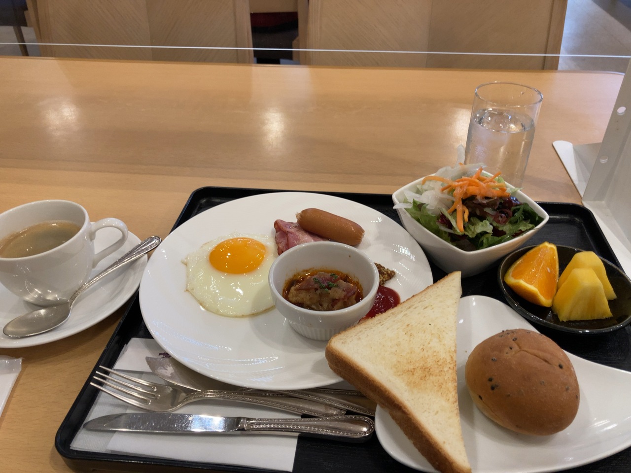 一階のレストランにモーニングに行きました。