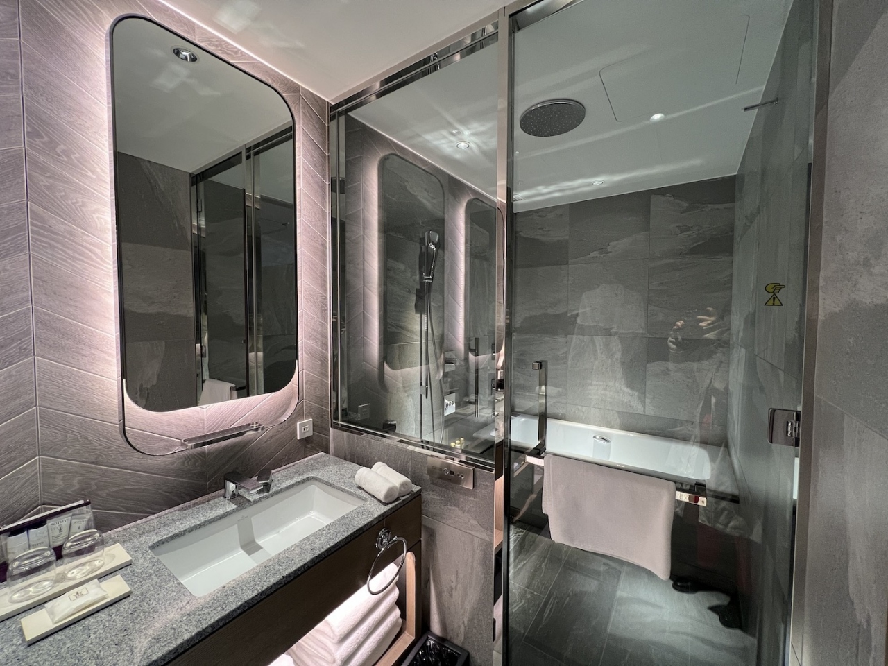 今回の宿泊では毎日スパを利用したためバスブースは使用しませんでしたが、バスタブと洗い場が一緒のタイプで、バスタブも大きくてゆっくりできそうでした。