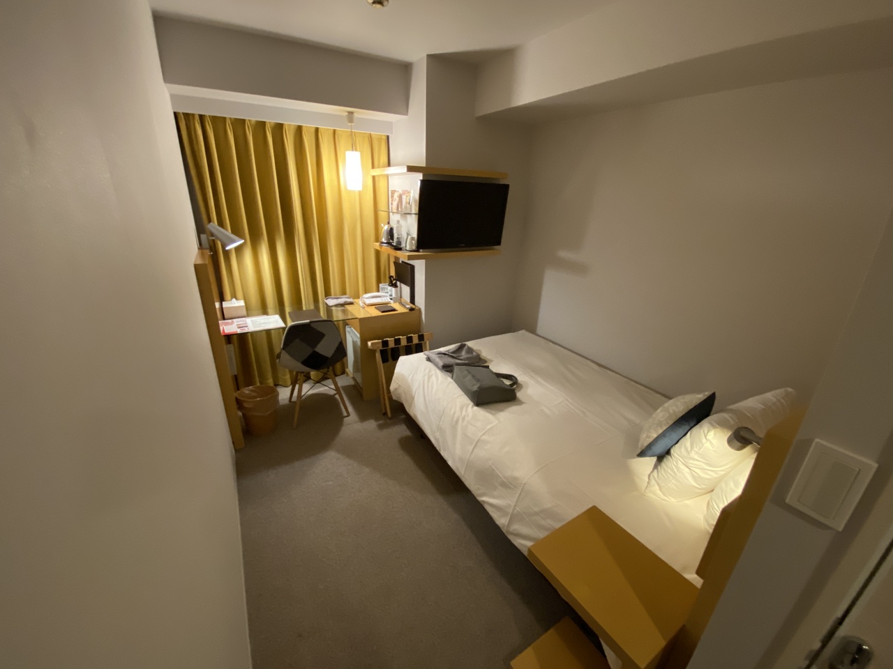 シングルの客室はこのクラスのホテルでは標準的な広さ。バスルームも明るくてきれいでした。