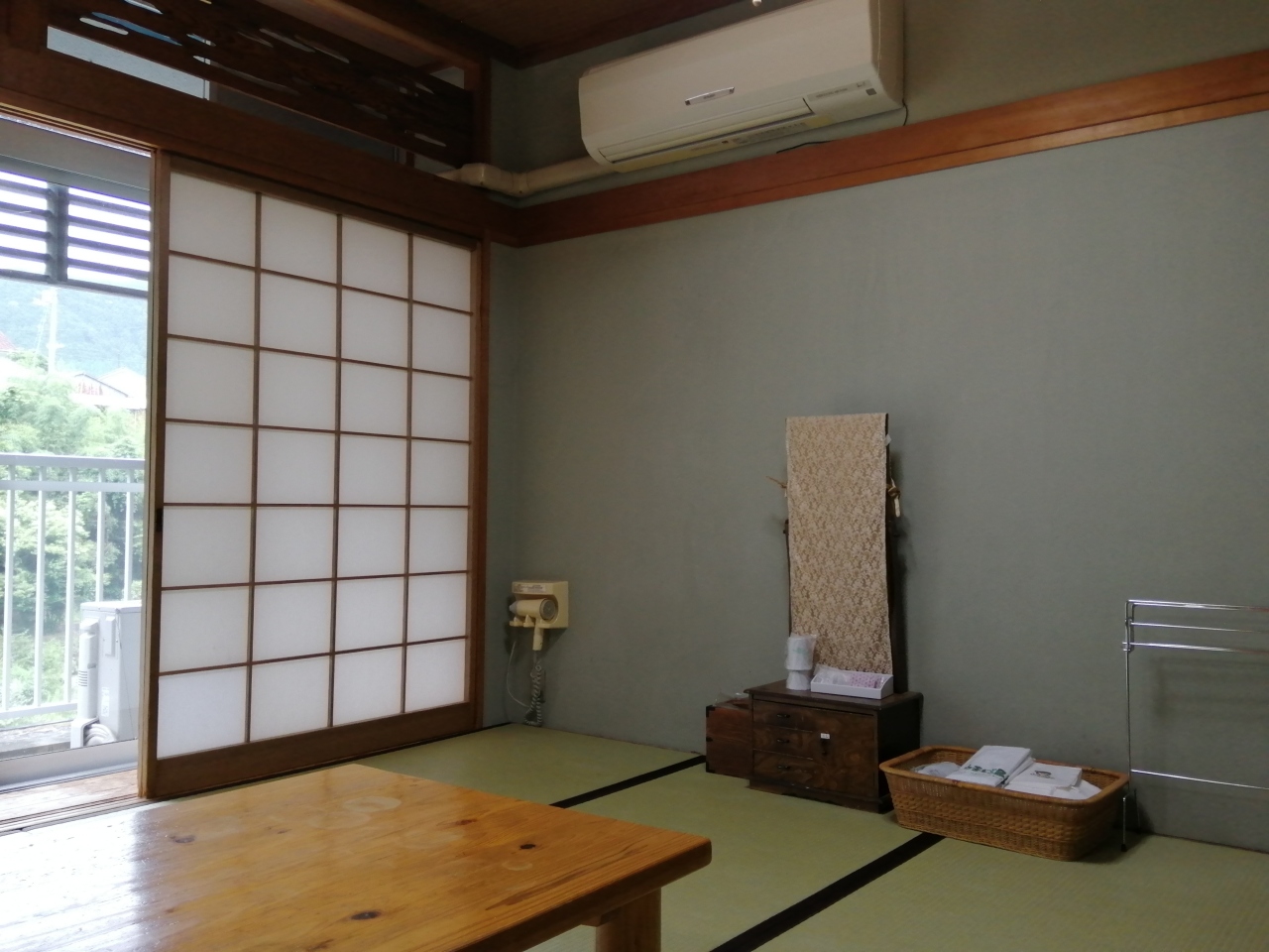 広い和室からは安田川が見え、冷蔵庫はなく(冷蔵品はフロントにお願いしました)、アメニティは歯ブラシ・くし・ひげそりのみでした。