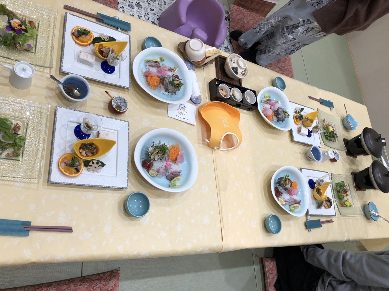 息子夫婦と0歳児の孫と一緒に宿泊しました。赤ちゃんへおもちゃやサービスがあり、お客さんは赤ちゃん連れが多く気兼ねなく宿泊できます。温泉大浴場もありますが、家族風呂などもあり入浴もしやすい環境が整っています。部屋は清潔で、食事は個室、食事も美味しく良かったです。