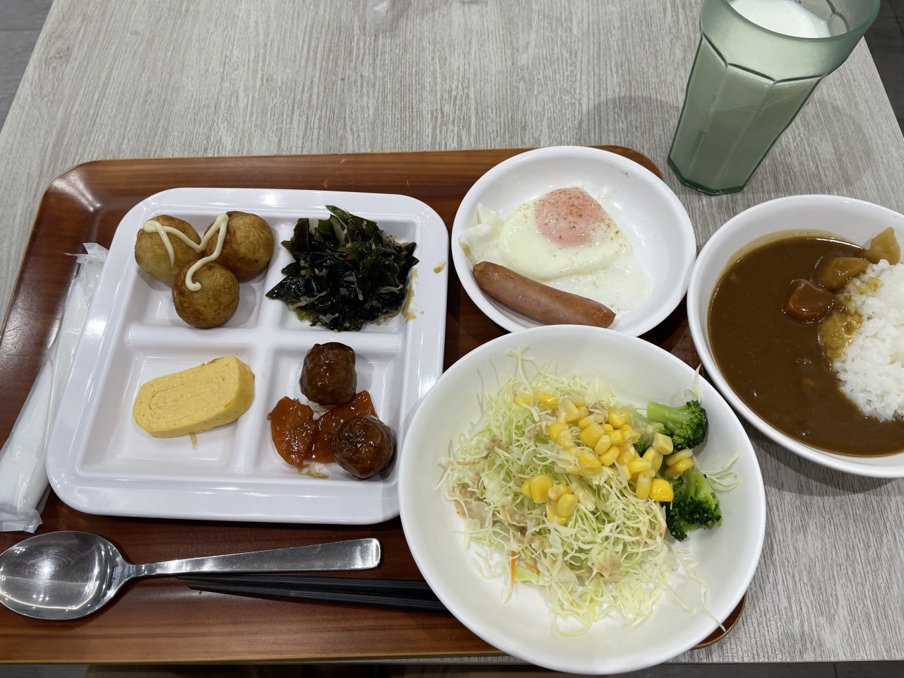 朝食にはたこ焼きがあり、大阪らしさを出していました。