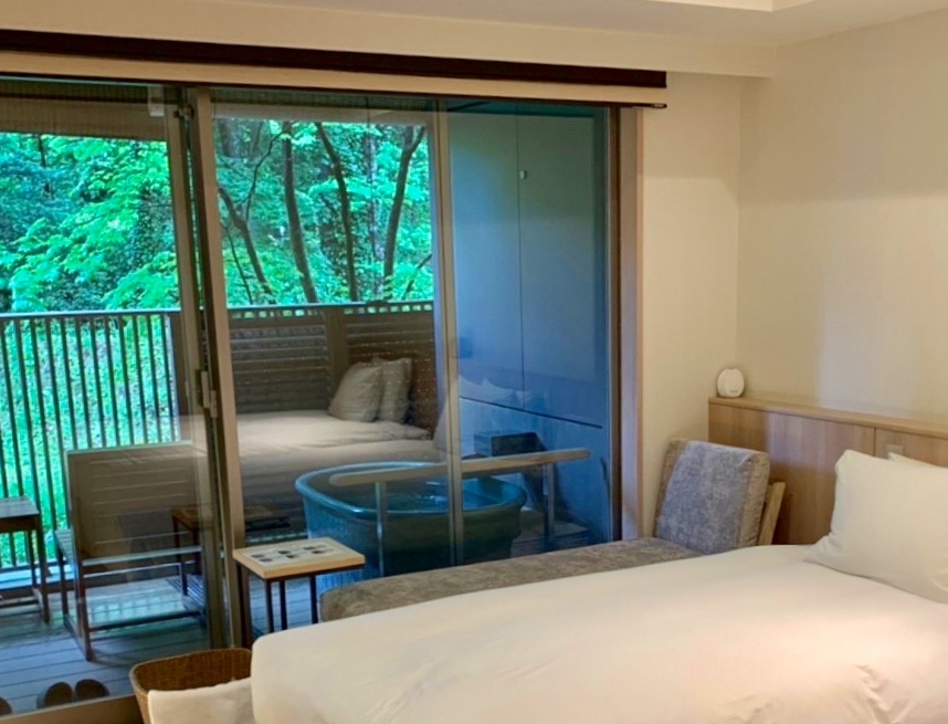 露天ぶろ付きの客室で、