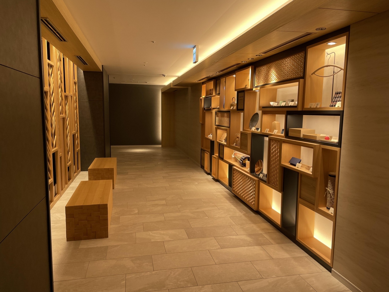 最近のホテルによくある、フロント出たとこの廊下に展示されている伝統工芸品がいい味出してる。