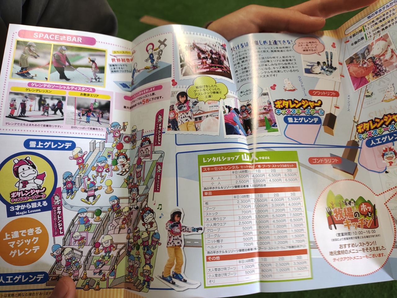 3~9歳の子供達の、初めてのスキーレッスンをやっています。スタッフの方々が、子供たちをやる気にさせたり、ほめて、滑れるようになるよう、一生懸命に頑張っていました。3歳は少し無理だと思いました。連泊しました。2回目の夕食のが、馬刺しが出たり内容が良かったです。