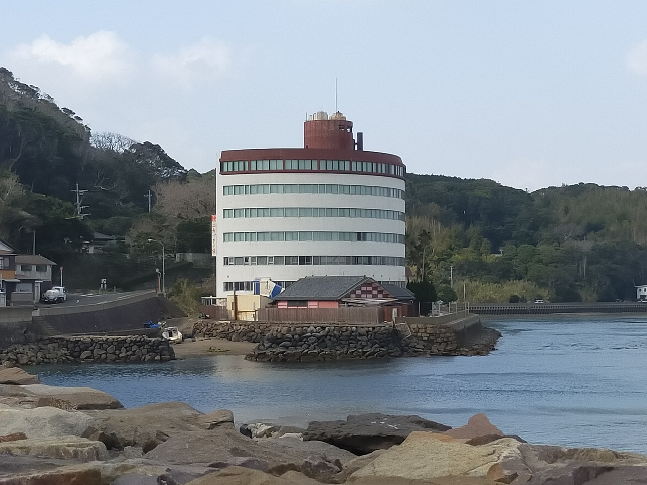 海岸沿いにあり、海を眺めるには最高の立地です。貸し切り以外では、温泉が2箇所、地下の内湯と露天風呂です。地下の温泉は周囲が魚の泳ぐ水槽になっていて、水族館の中にいるようでした。魚を鑑賞するのではなく、魚に見られているような不思議な雰囲気でした。