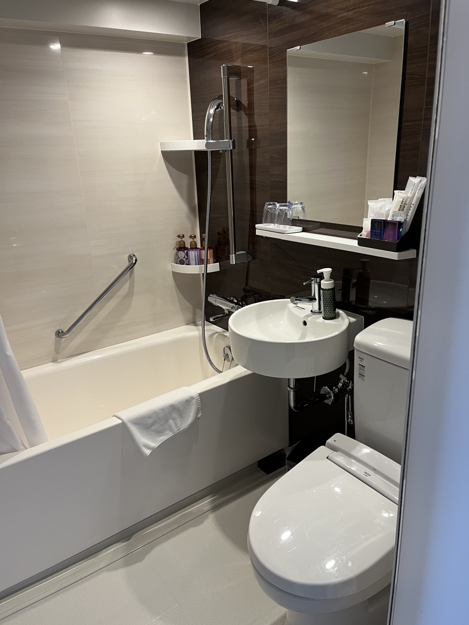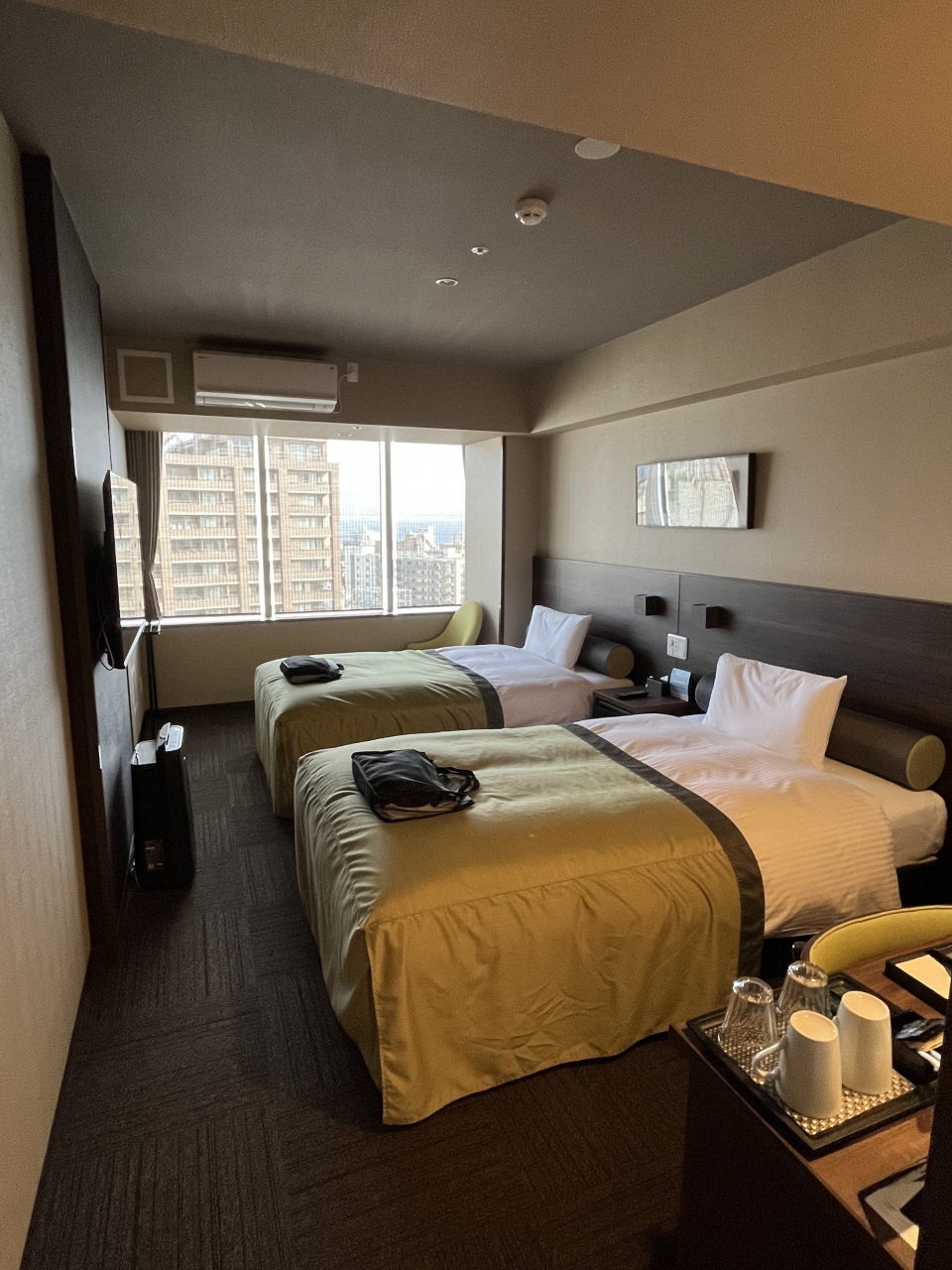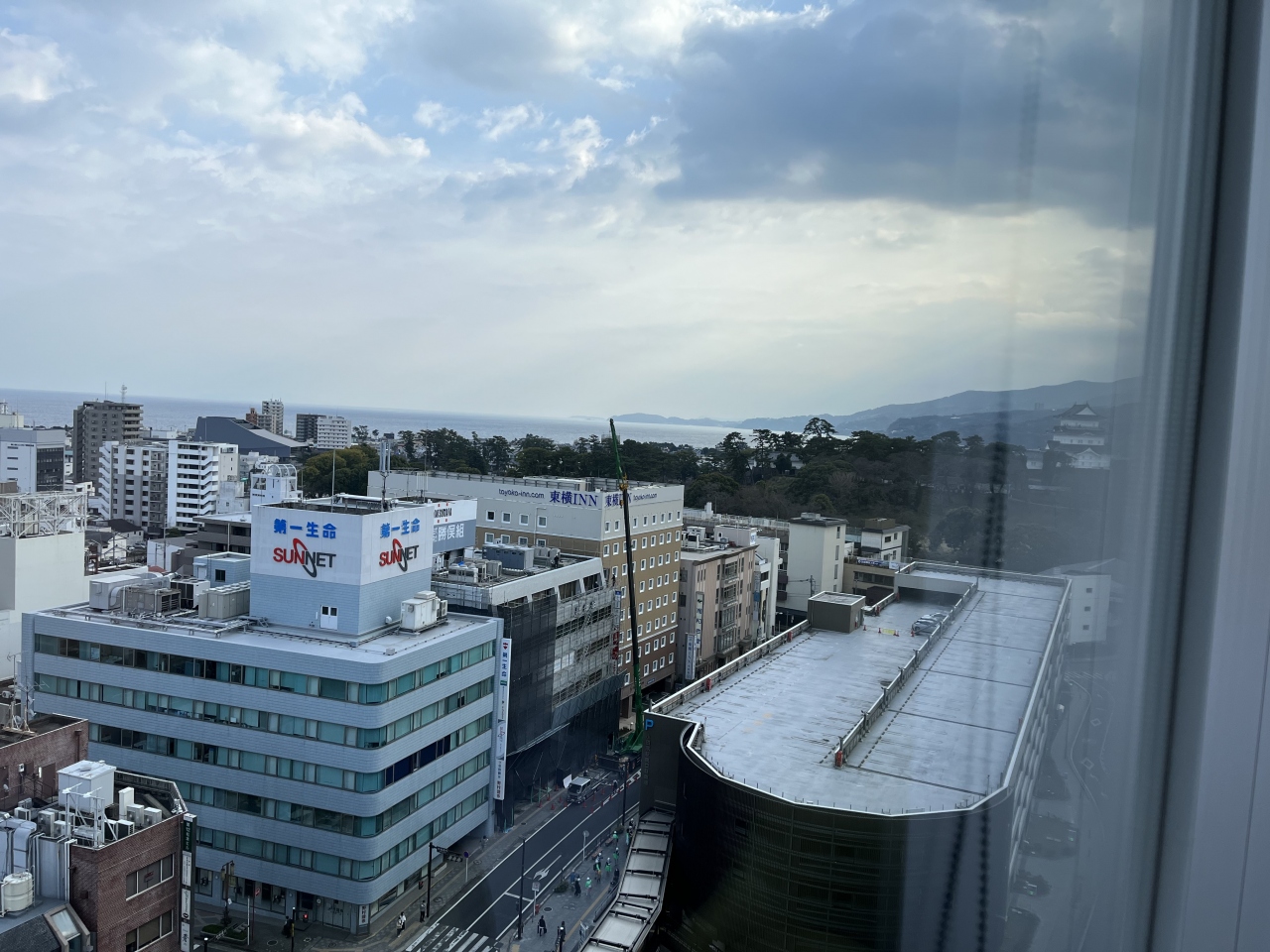 ミナカ小田原タワー棟の高層階がホテルになっています。小田原駅から雨でも濡れずにアクセスできて、立地は最高です。フロントは4階にあり、客室は10階から上の階でした。宿泊した部屋のタイプはモデレート・ツインです。バスルームも含めて、ビジネスホテルのようなつくりですが、新しくて快適に過ごせました。部屋からは海が見えて、開放感があって良かったです。小田原城も見えました。