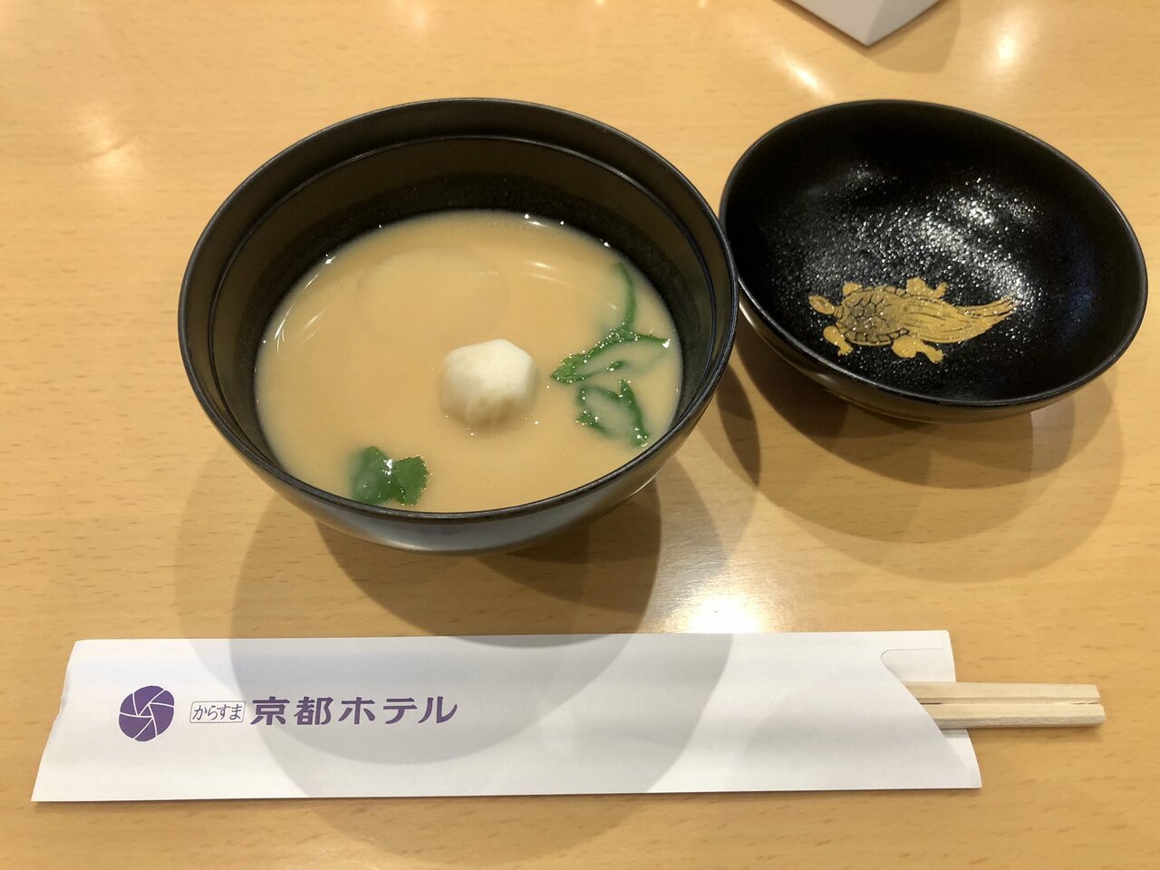 ホテルの朝ごはんでは、京都の白だし丸餅のお雑煮を初めていただくことができたのが嬉しかったです。