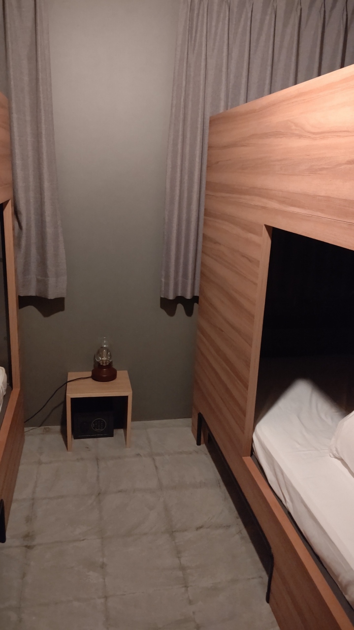 福岡県の旅で利用しました。一階がカフェが併設されています。チェックインは無人のタブレットで実施します。チェックインが完了すると入室できるパスワードが再度送られきます。夜になるとパスワードがないと入れないようです。お部屋はファミリールームを