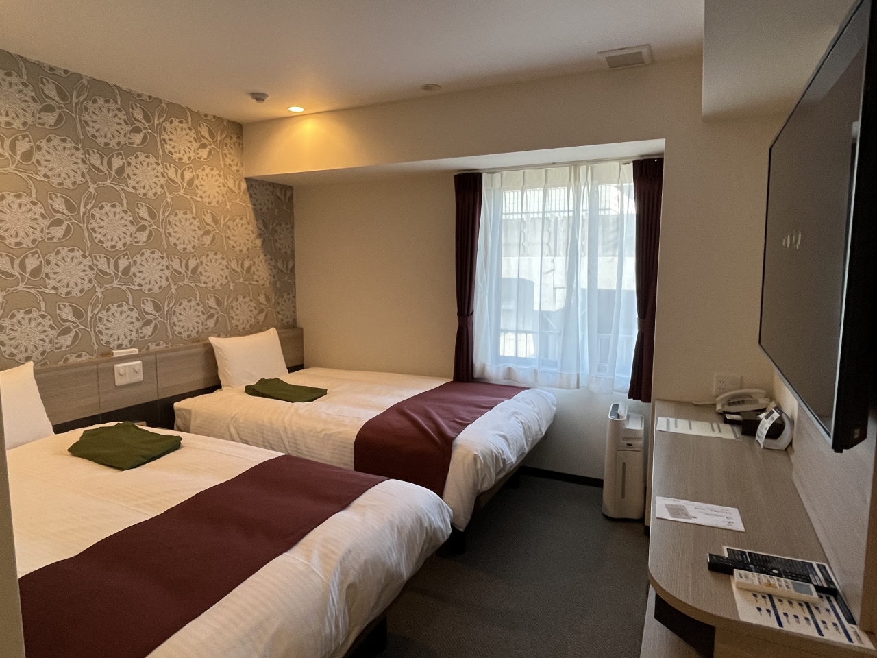 スーペリアツインに1泊しました。スーペリアツインは、ベッドが大きめの部屋になります。ハッピーアワーとしてアルコールを含むドリンクのサービスやカレーライスの提供があるなど、サービスが充実したホテルでした。朝食も全ての宿泊者が利用できます。ただ、会場が狭いため、大変混みあいます。その他、利用はしていないので雰囲気はわかりませんが、一階には大浴場がありました。