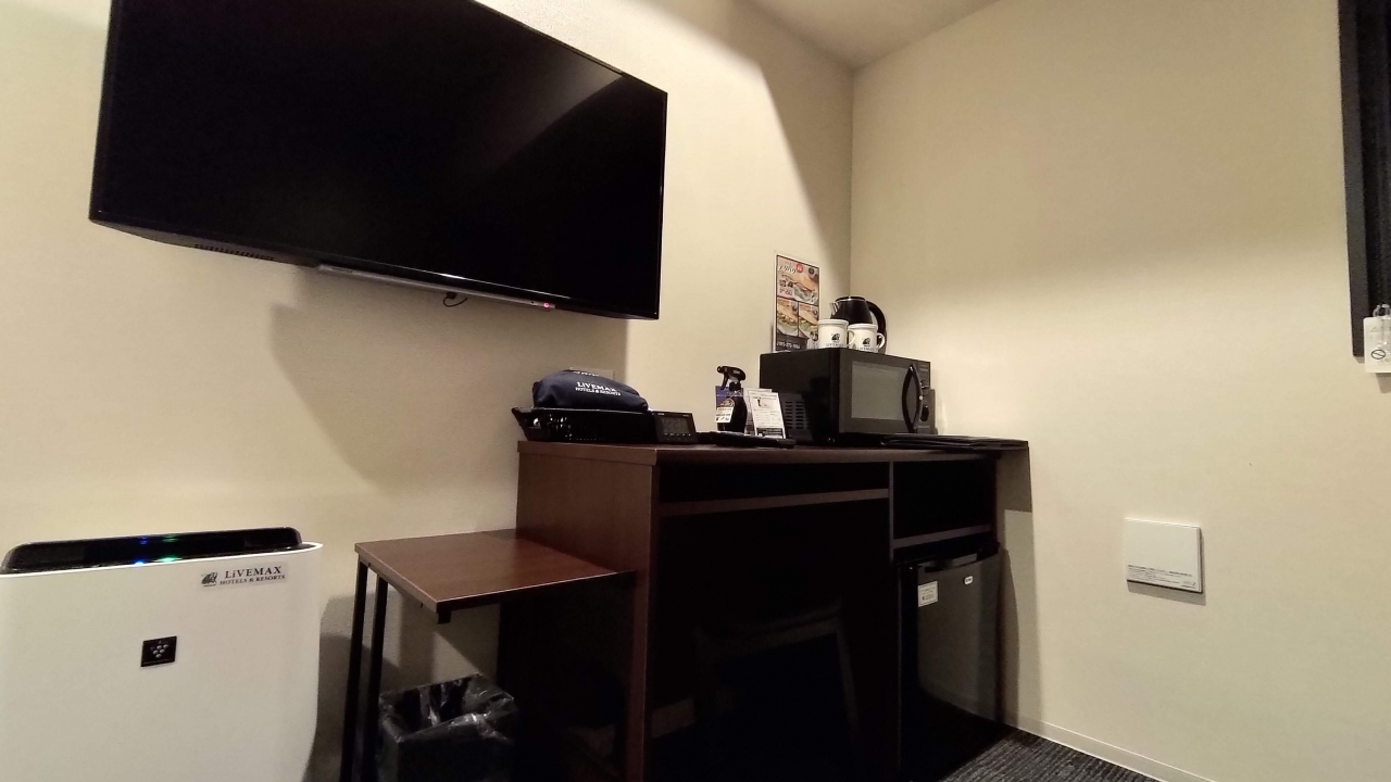 近くにコンビニもあるので深夜のチェックインを考慮しているのか、部屋に電子レンジがあるのが便利です。