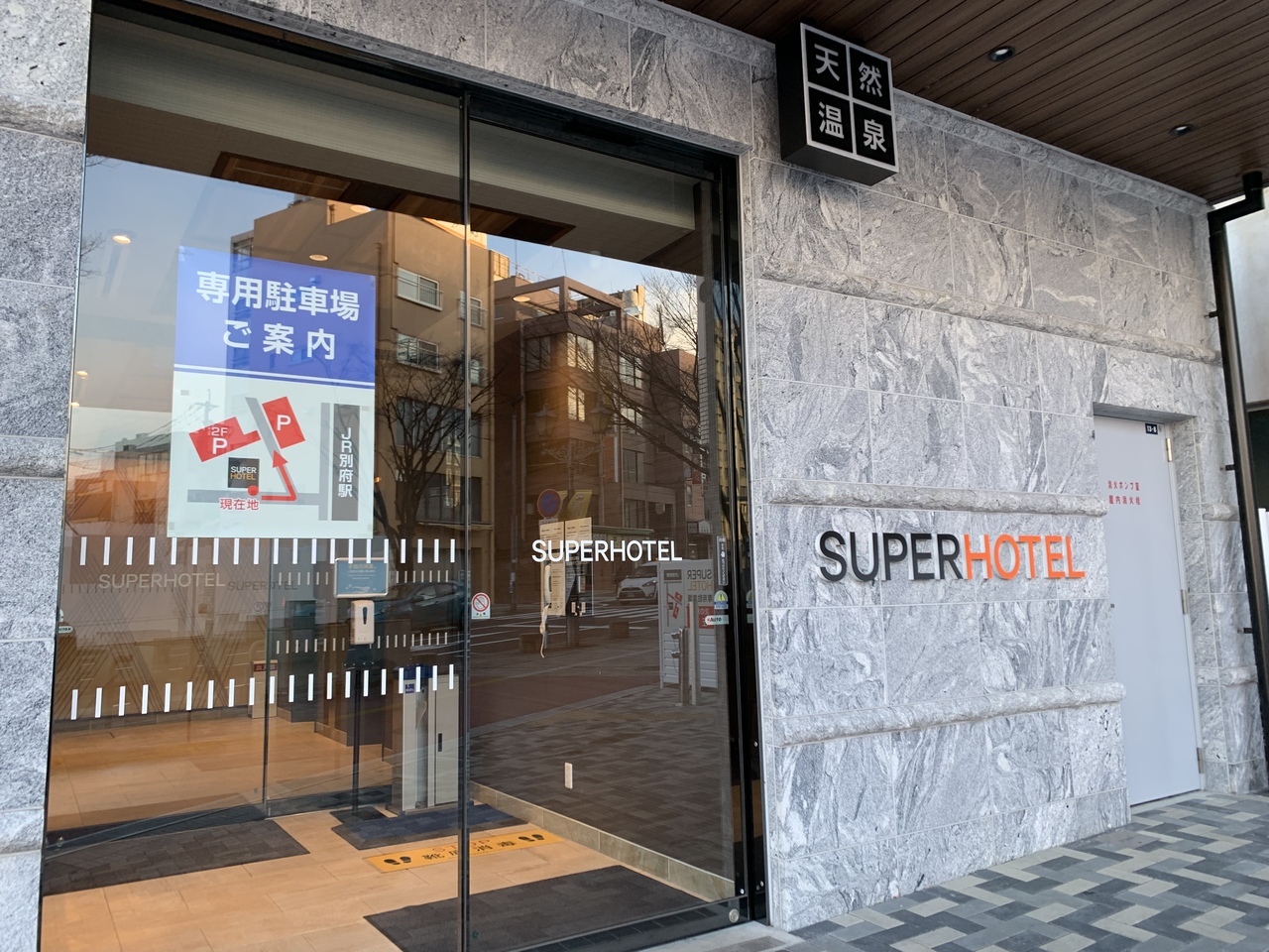 しかも、ここ別府のスーパーホテルは駅から歩いて2・3分という好立地で、駐車場(有料)も平面に停められるので出し入れ自由なのがポイントたかいです。