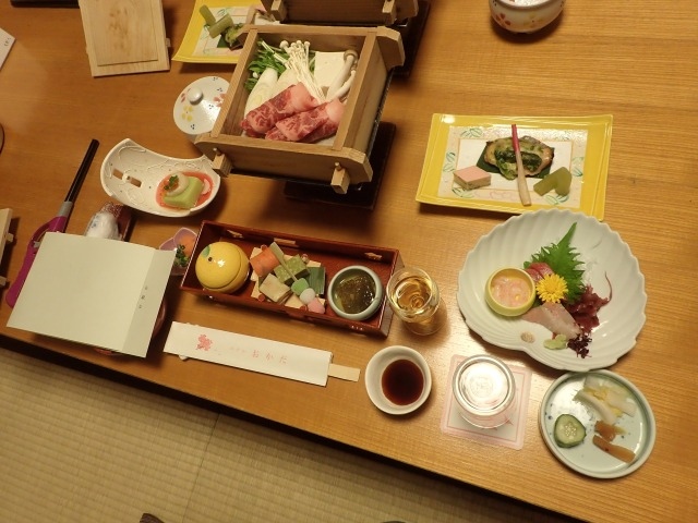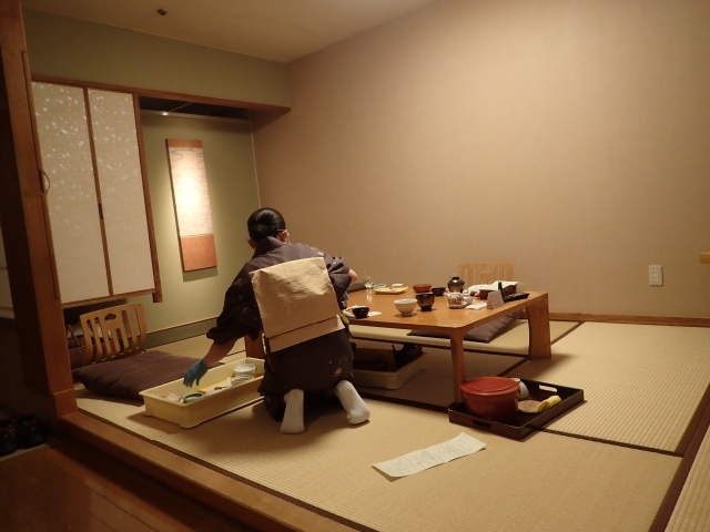 夕食が部屋食できたのがよかった。選んだ時間が近づいたら、仲居さんが運んできて、テーブルに並べてくれた。どれも美味しかった。最後のご飯、みそ汁、漬物の時間をずらして、これも希望の時間に運んできてくれた。