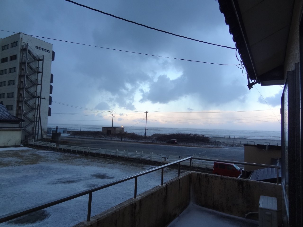 部屋にもよるのですが、私が泊まった部屋は右を見ると、やや遠目に日本海が見えました。