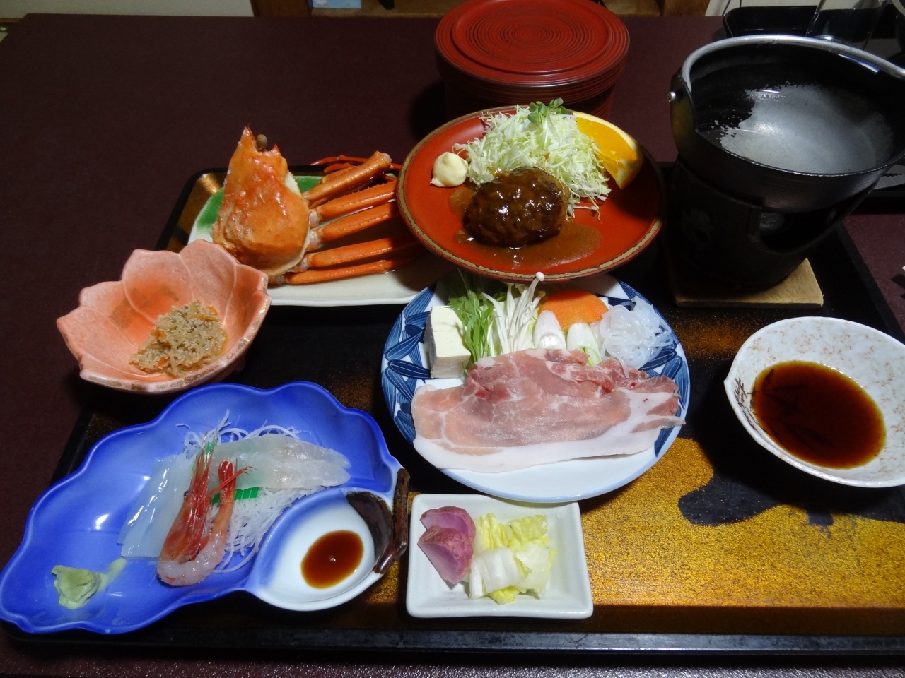 格安な宿泊代に関わらず、日本海に近いとあって海の幸が食卓に並びました。