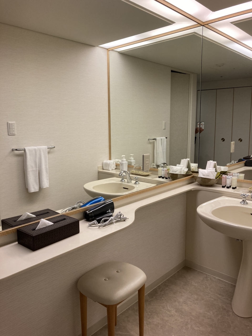 客室数は310.2~4階がフォレストフロア、5・6階がデラックスフロア、7・8階がクラブフロアとなっており、全室2017年から2018年にかけて全客室はリニューアルされており、ふるさは感じさせません。広さは36.9㎡以上で、窓の前には、大きなソファを備え、ゆったりくつろぐことができます。全ての部屋の窓が開くので、清々しい風を取り入れることができるのも心地よい。クラブフロアからは比叡山を見ることができる部屋もあるようですが低層階の部屋でも自然と溶け込んた景色を見ることができ、私の部屋からは野生の鹿を見ることができました。バスタブはホーロー製のものを採用し、お湯が冷めにくくなっています。パウダールームも独立していて広々していて使いやすい。ただ、エレベーターホールこら遠い部屋の場合、結構歩くことになります。