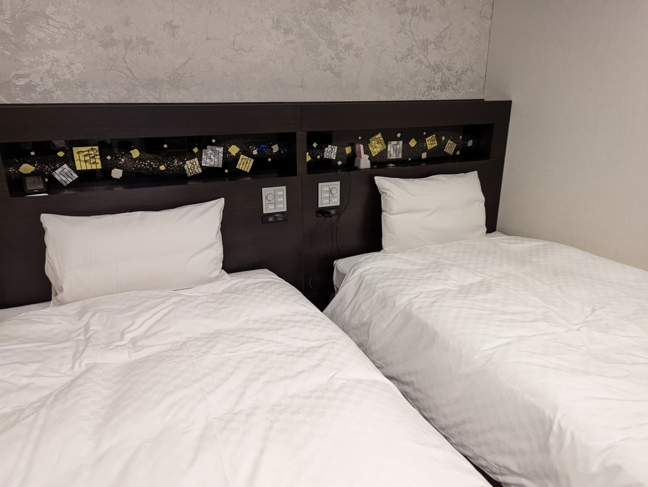 ベッドの寝心地も良かったです。朝食のビュッフェのコストパフォーマンスも良いのです。一つ残念なのは、当方3泊したのですが、ビュッフェのメニューが毎日ほとんど同じ。変更は1品あるかないか。一泊の人はいいけど、連泊するとちょっと飽きてしまうかもしれないです。一回にセブンイレブンがあり、そこの店員さんが何時もとっても感じよかった。京都駅の近くでこんなにお手頃に宿泊できたのは初めてなので、とても満足のいく滞在となりました。