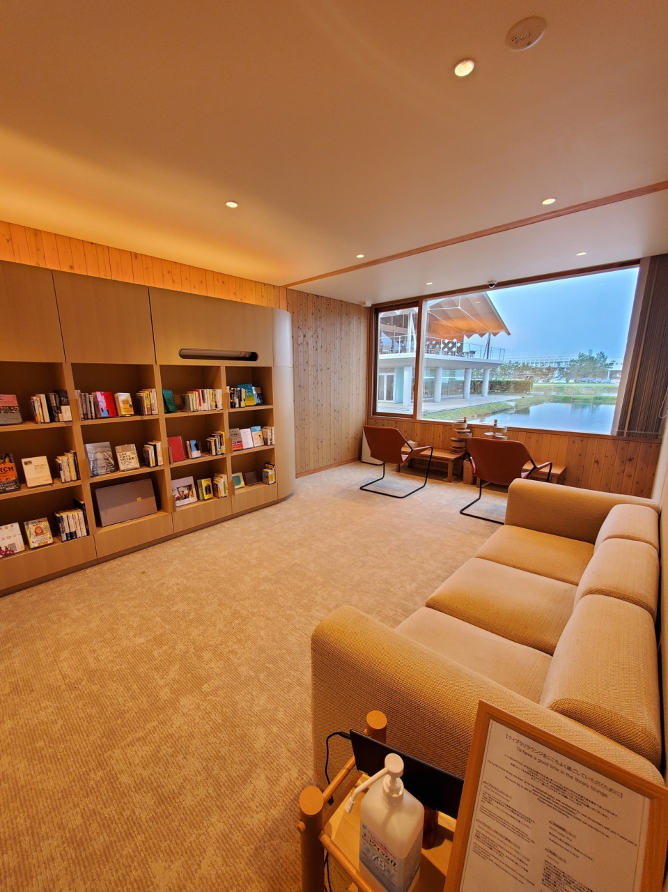 ライブラリースペースが数ヶ所 フロント後ろにはテラス席があります